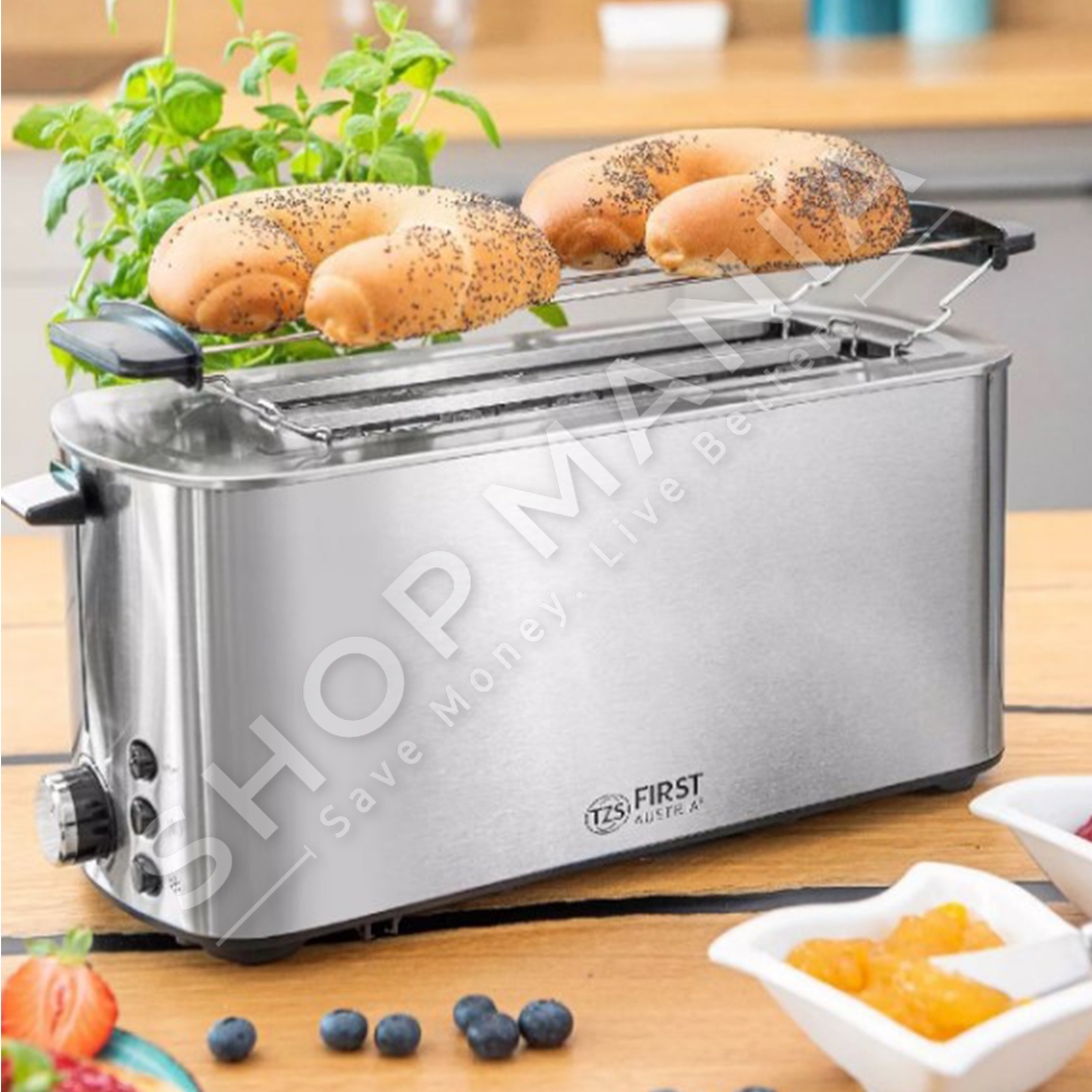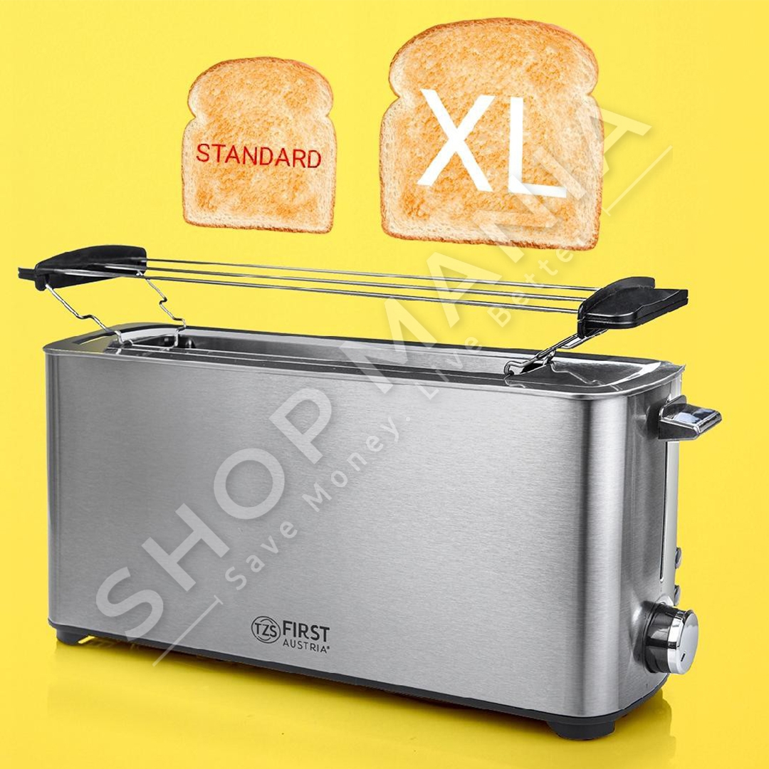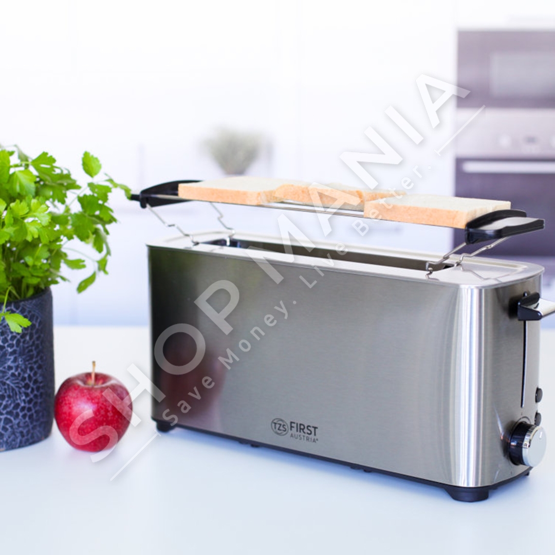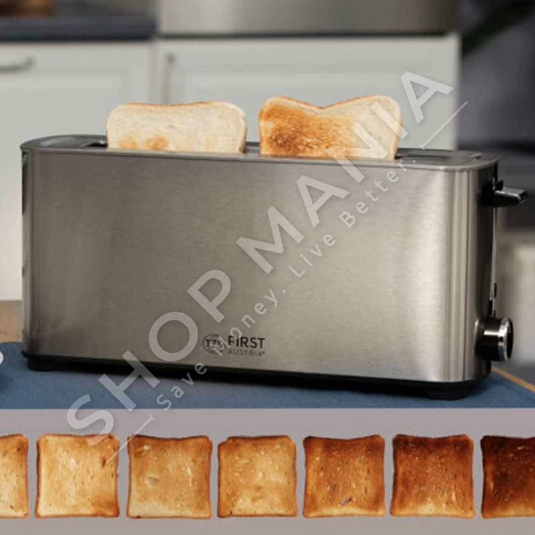 Tosti i thekur ne menyre te barabarte eshte tashme i mundur me thekesen e bukes "First Austria FA-5367-4 Toaster for 2 slices on one slot 1050 W".