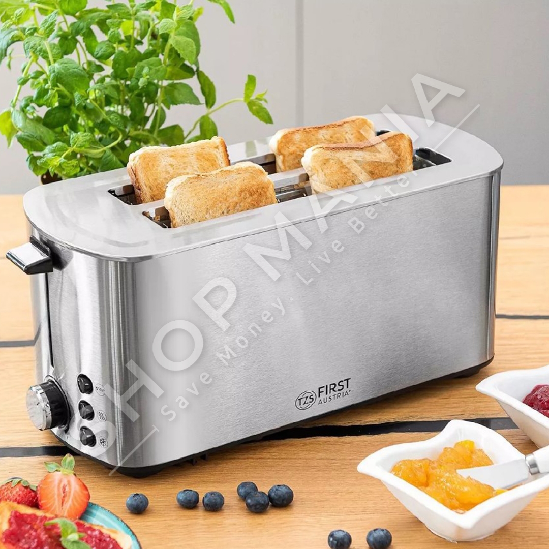 Tosti i thekur ne menyre te barabarte eshte tashme i mundur me thekesen e bukes "First Austria FA-5367-5 Toaster for 4 slices in two slots 1400 W".
