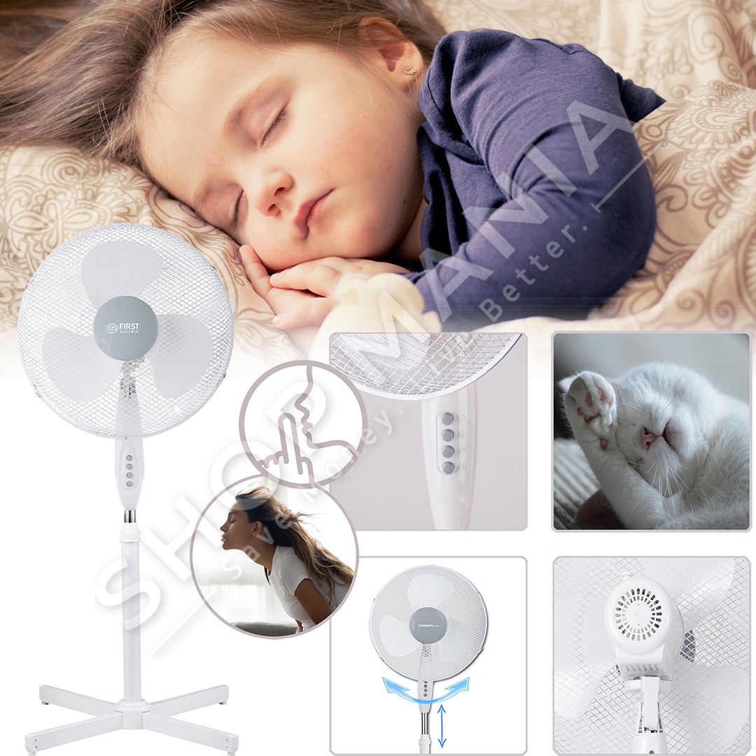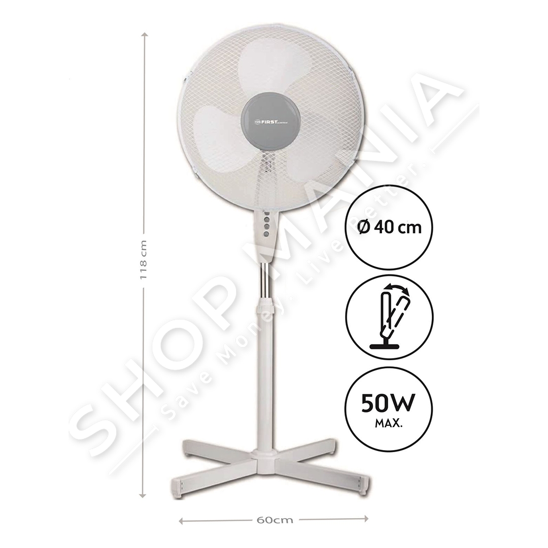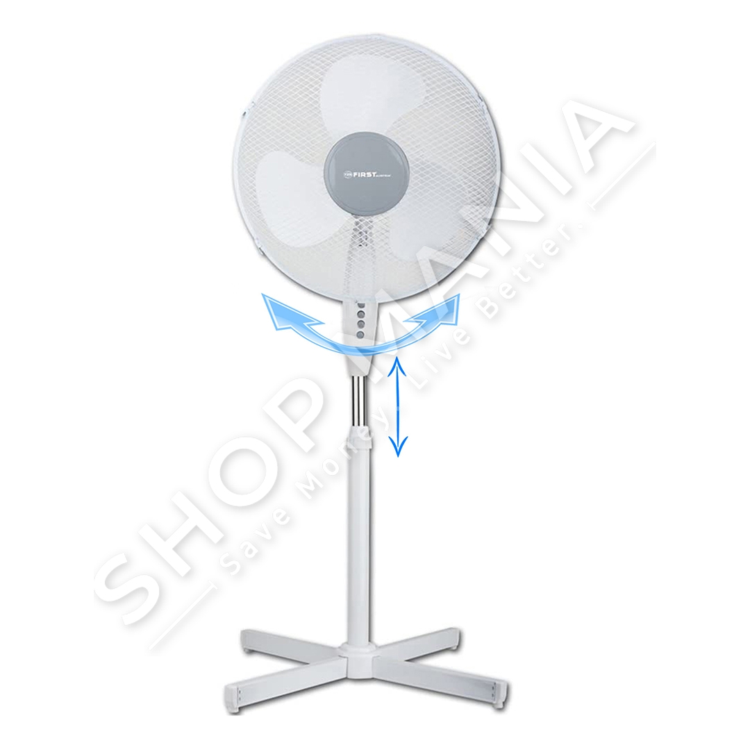 Qendroni te fresket ne ditet e nxehta te veres me ventilatorin "First Austria FA-5553-1 Floor fan with 3 speeds 40 CM (16″) 50 W".