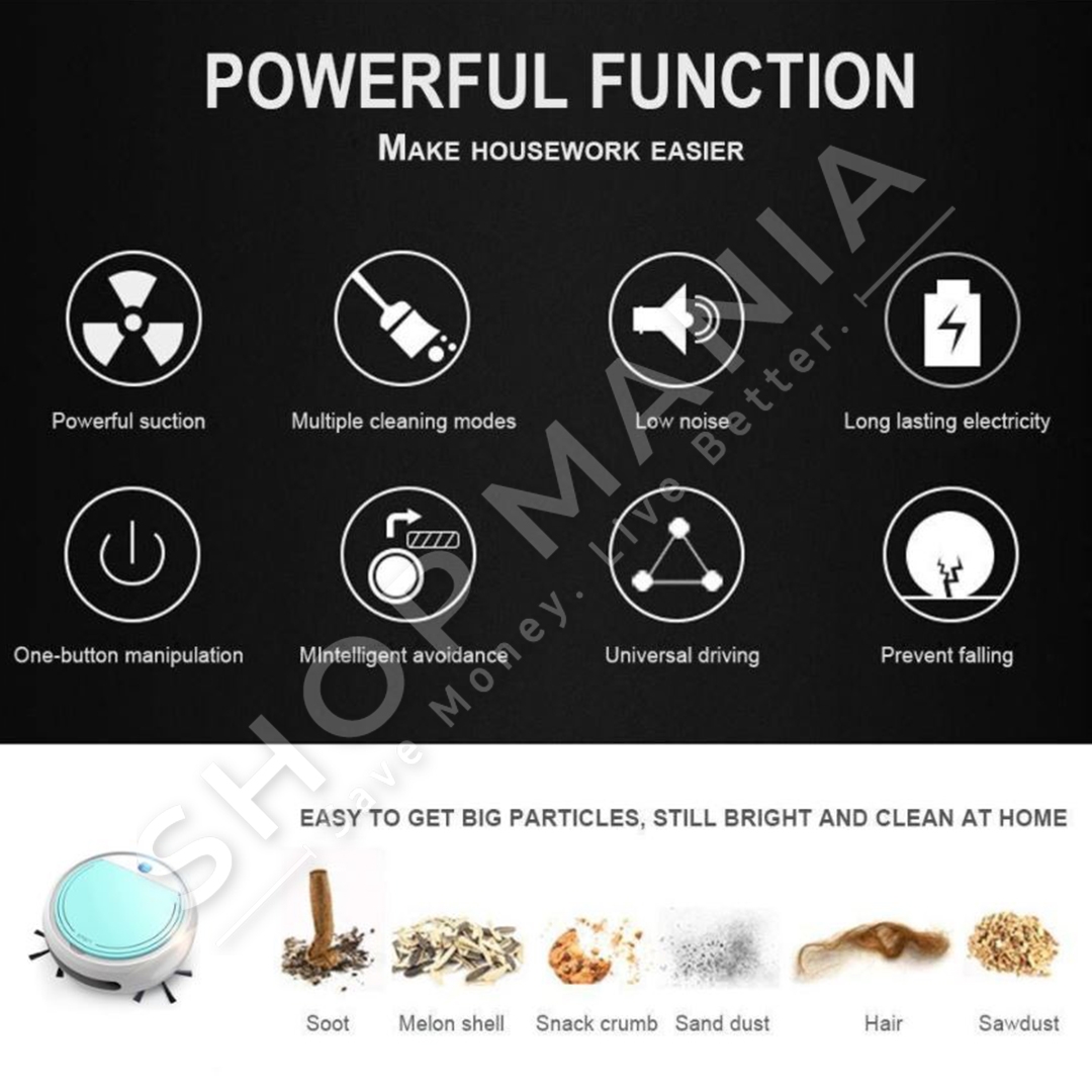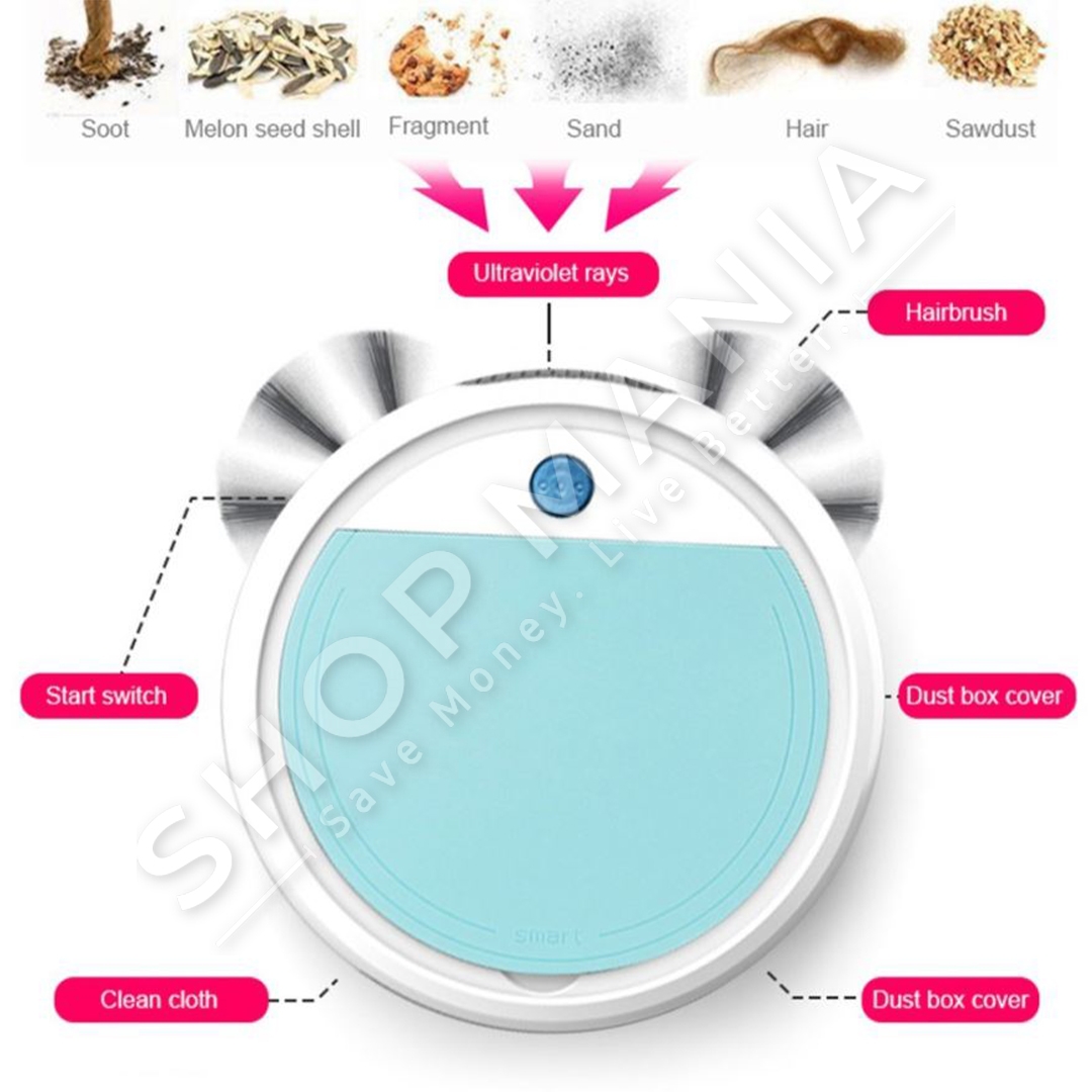 Fshese robot 4 ne 1 me dizajn modern dhe praktik, pastron ne menyre eficente te gjitha llojet e dyshemeve, qilimave, pllakave. Arrin te mbledhe edhe papastertite me te imeta. Me sensore qe njeh pengesat duke shmangur goditjen apo gervishtjen e mobiljeve. Rezervuari i pluhurit eshte i pajisur me filter HEPA qe kap 99.97% te pluhurit ne menyre efektive.
