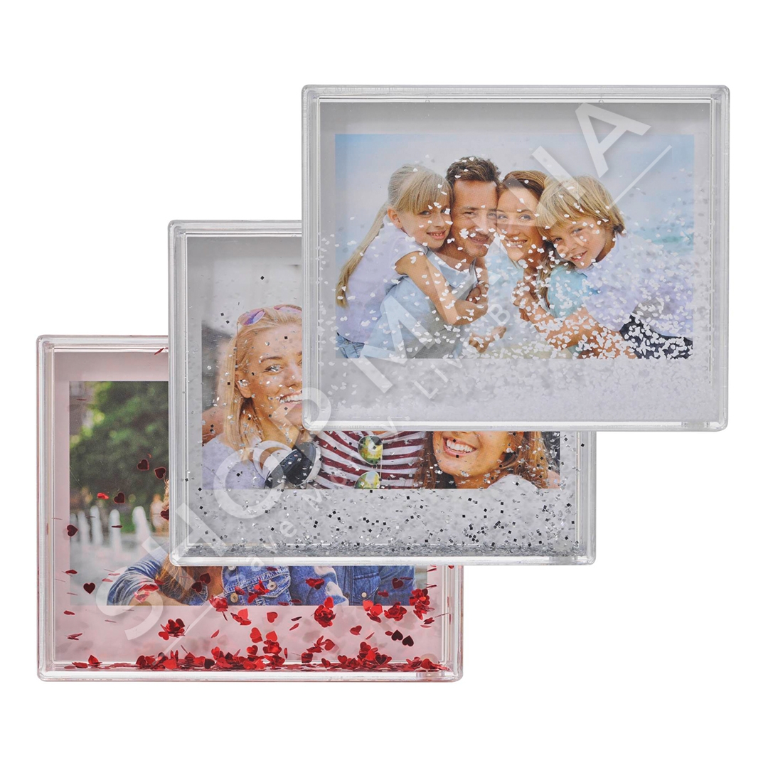 Përshkrimi:Kornize e gjere Instax e mbushur me uje dhe floke bore e pershtatshme per te vendosur foto ne menyre horizontale.Specifikat:Materiali: Plastike