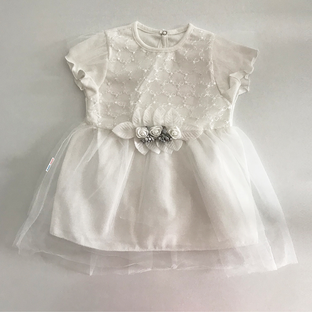 Fustan me tyl te pjesa e poshtme dhe menge te shkurtra.