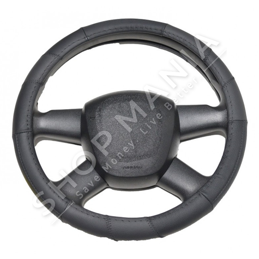 Specifikat:Materiali: LekureMaterial 100% pa aromeE buteE lehte per t'u vendosurRezistente ndaj terheqjesShume e qendrueshme ndaj perdorimit te perditshemE rehatshme ne te gjitha stinetPershtatet ne shumicen e makinavePastrohet lehtesishtParandalon rreshqitjen e duarve ne timonMbron timonin nga konsumimiNuk grimcohet ose shperbehet lehtePer nje timon me te fresket gjate veresPer nje timon me te ngrohte gjate dimritNgjyra: E zezeModeli: GP-90166Masa: MPer timon me diameter: 37-38 cm