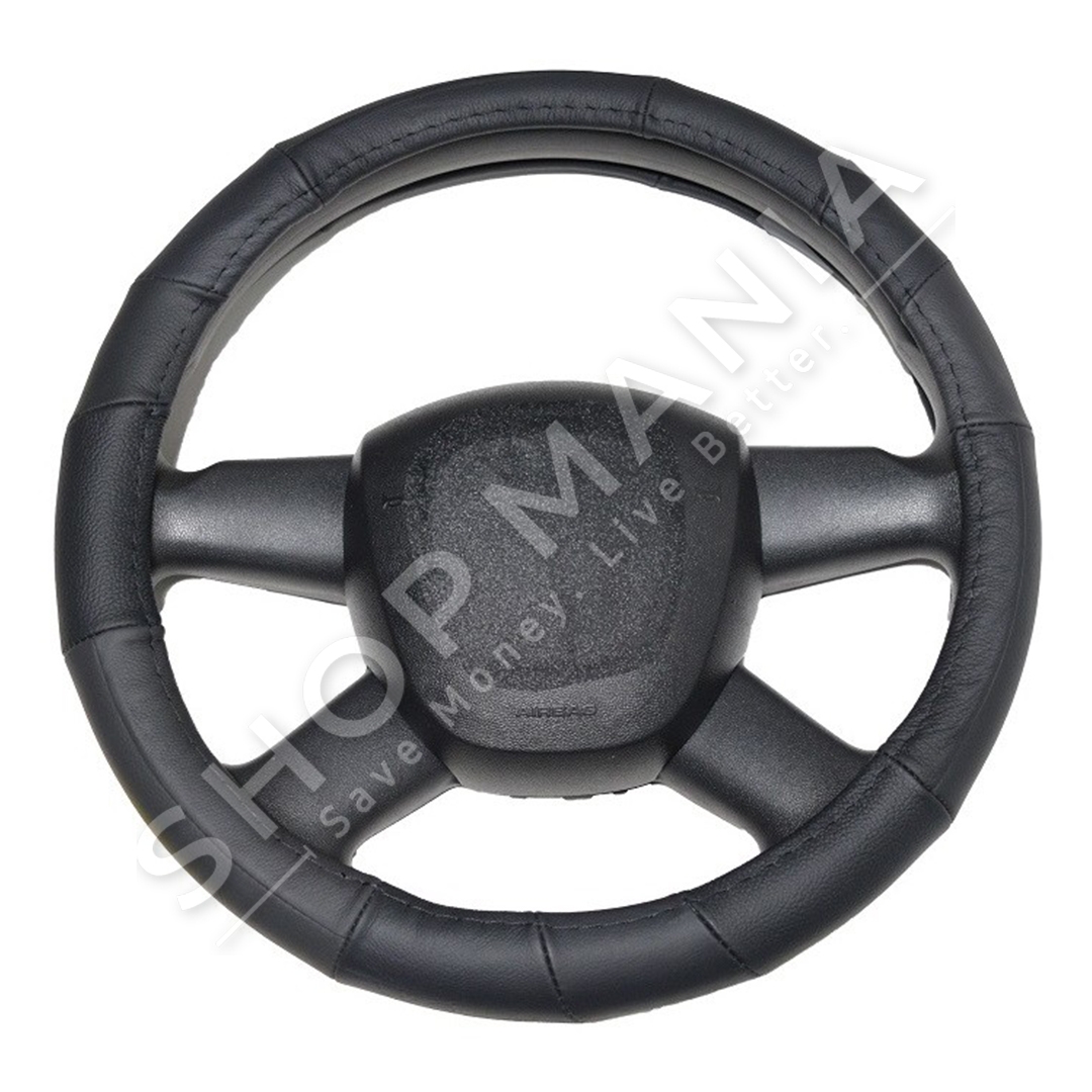 Specifikat:Materiali: LekureMaterial 100% pa aromeE buteE lehte per t'u vendosurRezistente ndaj terheqjesShume e qendrueshme ndaj perdorimit te perditshemE rehatshme ne te gjitha stinetPershtatet ne shumicen e makinavePastrohet lehtesishtParandalon rreshqitjen e duarve ne timonMbron timonin nga konsumimiNuk grimcohet ose shperbehet lehtePer nje timon me te fresket gjate veresPer nje timon me te ngrohte gjate dimritNgjyra: E zezeModeli: GP-90150Masa: SPer timon me diameter: 35-36 cm