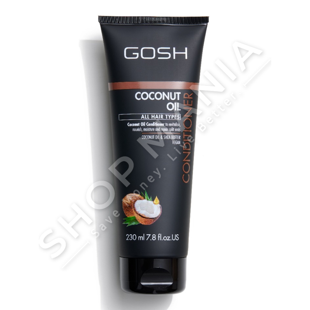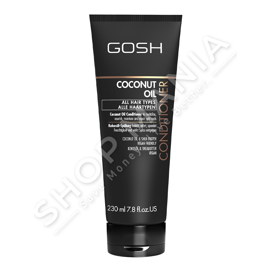 Balsam per floket Gosh Coconut Oil mund te perdoret per te gjitha llojet e flokeve - per floke normale, te holle, me ngjyre ose te demtuar. Perberja delikate me vaj kokosi dhe gjalp Shea riparon skajet e ndara, rigjalleron, ushqen dhe hidraton floket dhe lekuren e kokes. Floket marrin nje pamje te bukur, te lemuar dhe me shkelqim dhe me nje arome fantastike te kokosit.