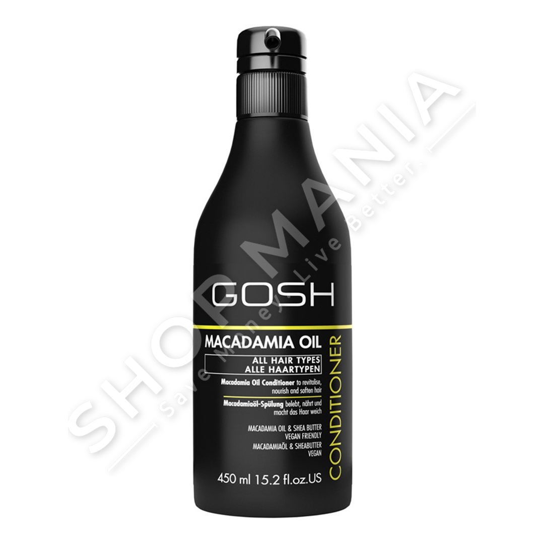 Balsam per floket Gosh Macadamia Oil mund te perdoret per te gjitha llojet e flokeve, por eshte vecanerisht e mire per floket e thate, kacurrele ose te demtuar. Ajo permban nje kombinim te vajit te makadamias dhe gjalpit Shea, te cilet ndihmojne per t'i dhene flokeve gjithe ushqimin qe i nevojitet. Floket behen super te bute dhe jane me te lehte per t'u krehur pas larjes.