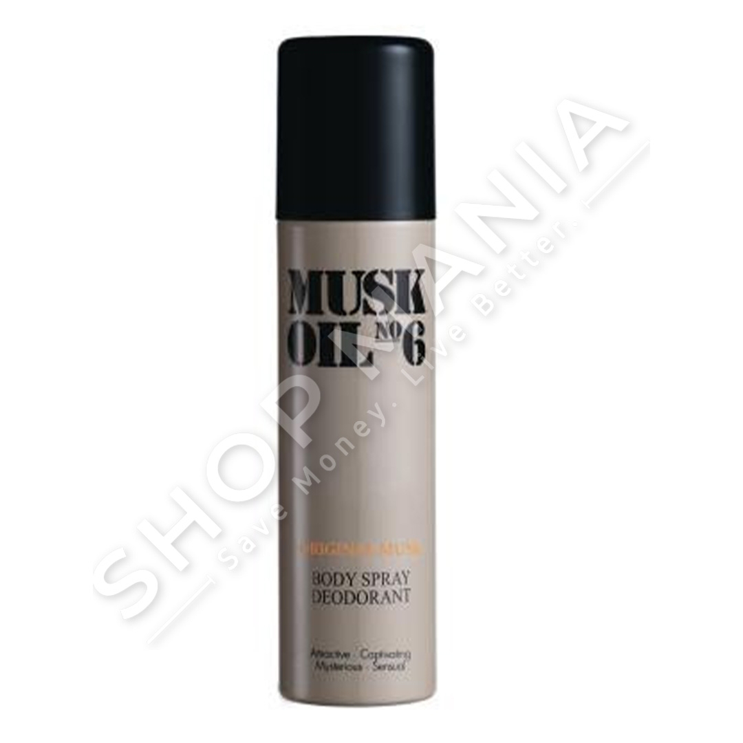 Përshkrimi:Deodorant Body Spray Musk Oil 6 terheqes, misterioz, sensual Unisex me nje arome unike te miskut.Me aromat e luleve si: jasemini, lulet e zambakut, zambakut te ujit dhe trendafilit.