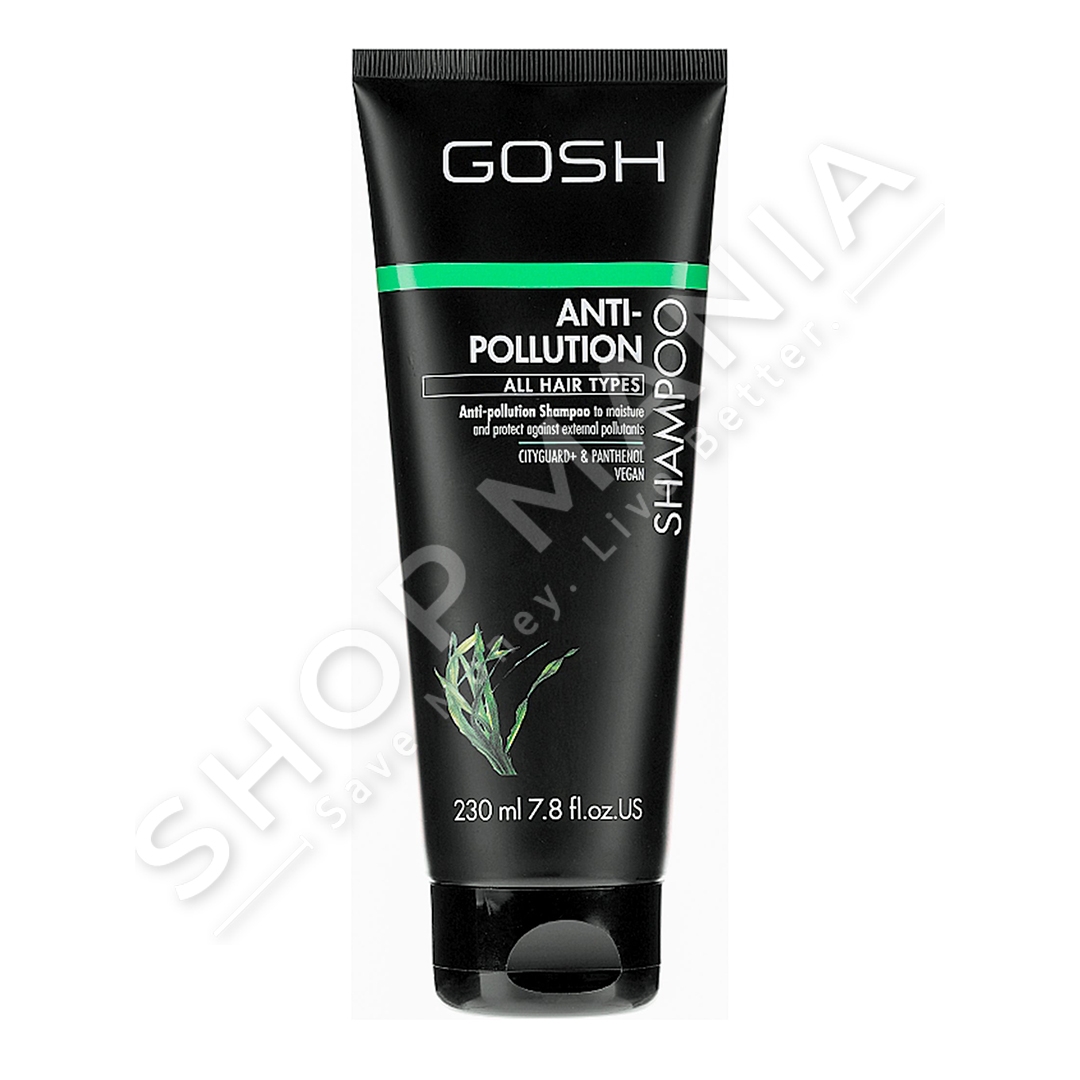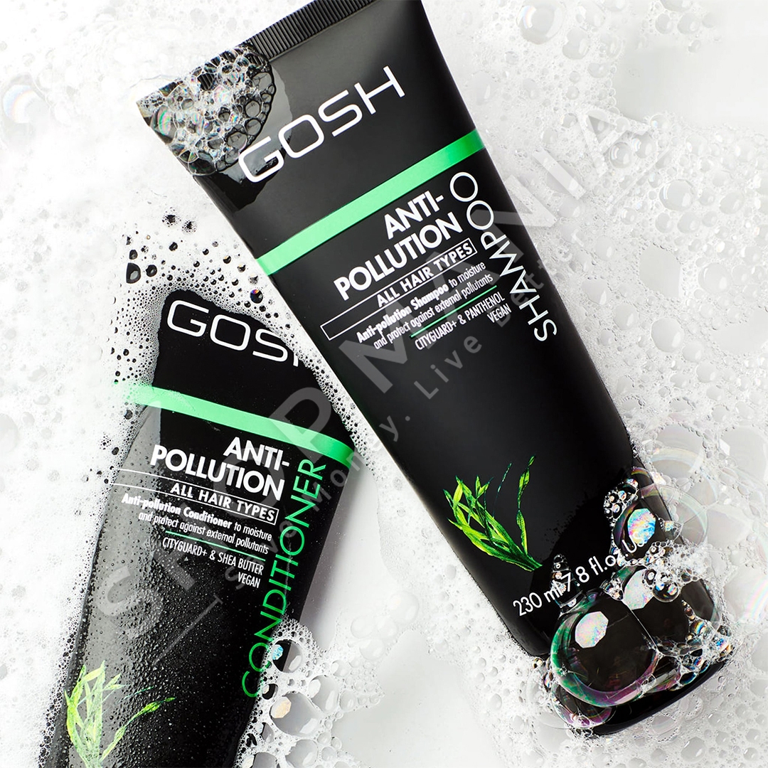 Shampo Anti-Ndotje nga Gosh, pastron butesisht floket dhe lekuren e kokes. E mbushur me Panthenol dhe CityGuard+ mbron nga ndotesit e jashtem, heq mbetjet nga floket dhe shton lageshti. Ndihmon floket te rimarrin vitalitetin, elasticitetin dhe shkelqimin, i mbron nga dehidratimi dhe zbut strukturen e flokeve. E pershtatshme per te gjitha llojet e flokeve.