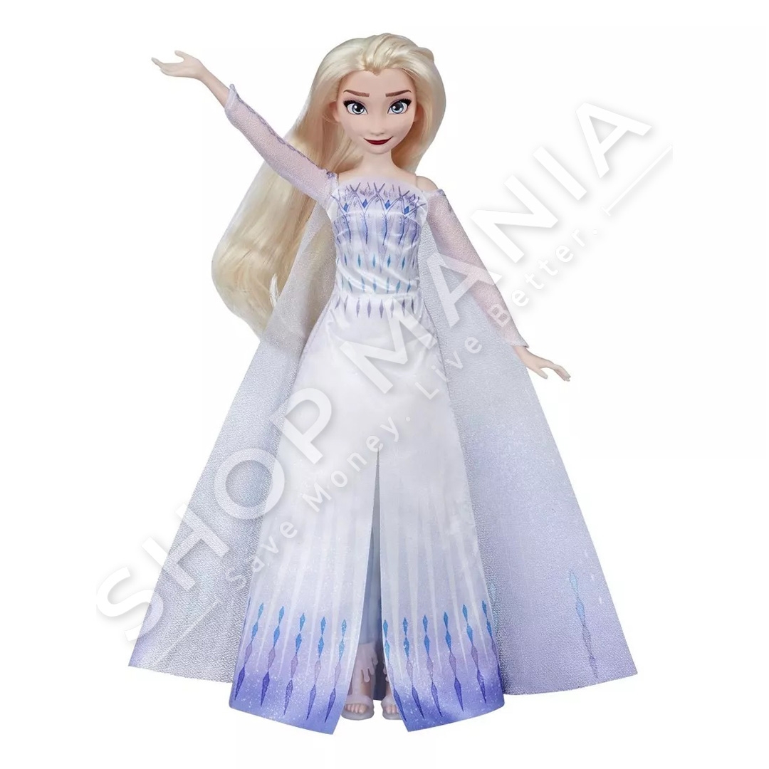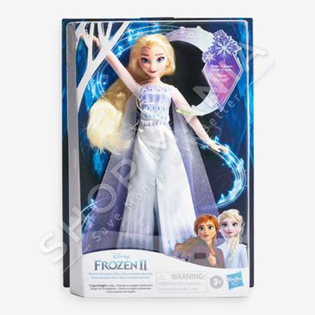 Kukulla Disney Frozen II Musical Adventure, eshte Elsa e cila kendon kengen "Show Yourself", ne qofte shtyp butonin ne trupin e saj. Me nje fustan elegant plot shkelqim ngjyre te bardhe me lejla. Me floke te gjate ngjyre te verdhe, gjithmone e bukur. Mosha: +3 vjec