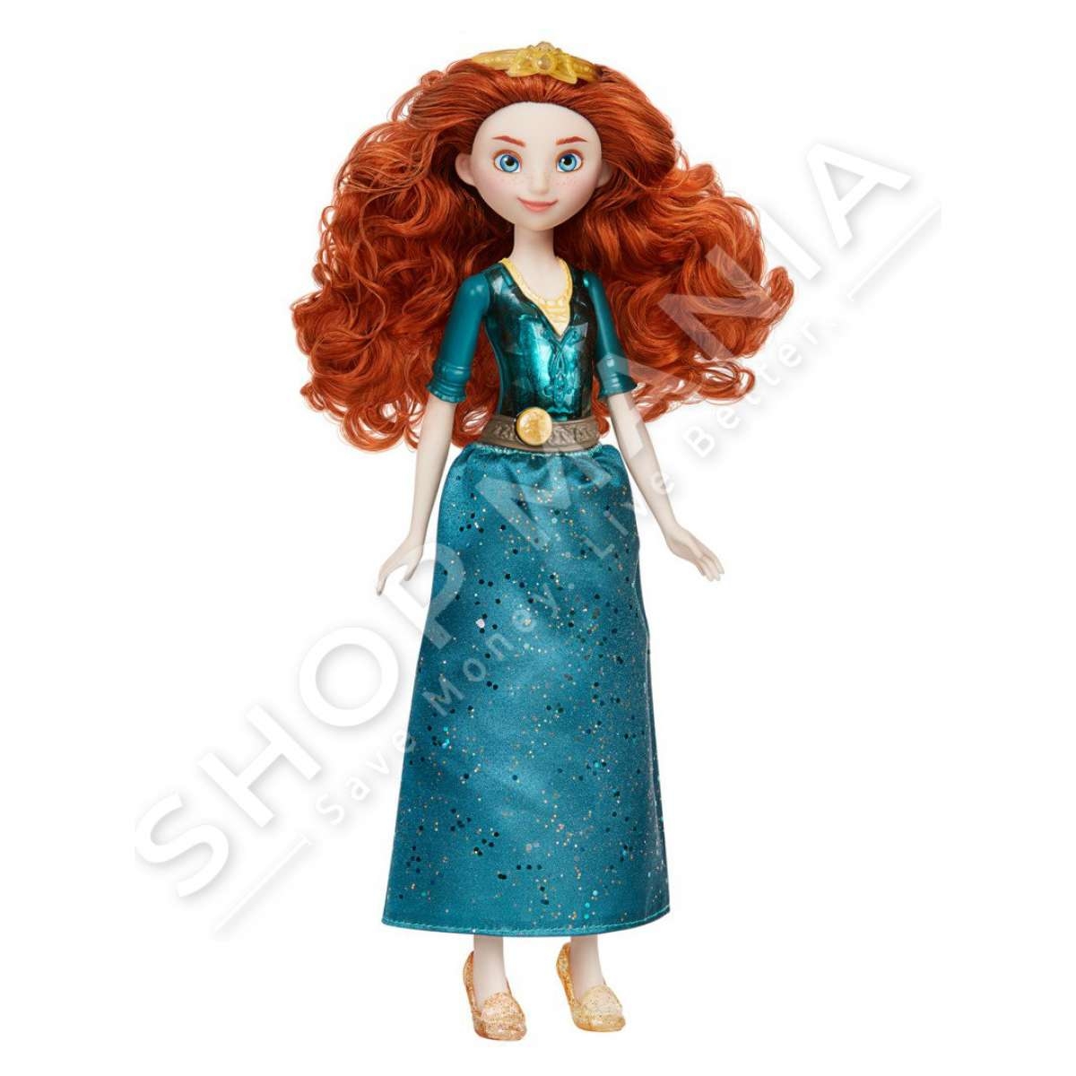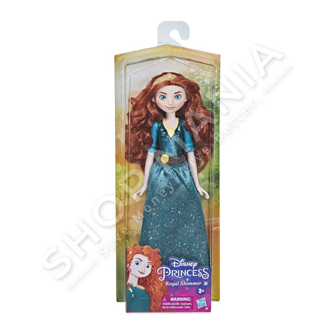 Disney Princess Royal Shimmer Merida eshte kukulla Merida me floket e dendur ngjyre te kuq.