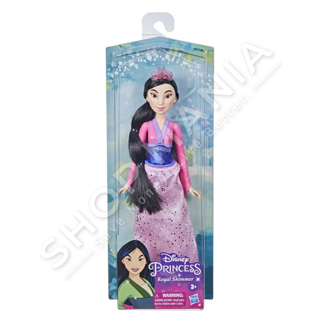 Disney Princess Royal Shimmer Mulan eshte kukulla Mulan nje luftarake e vertete. Veshur me nje fustan te gjate tipik aziatik ngjyre roze me lejla. Me nje kurore mbi koke dhe floke te kapur ngjan teper e bukur. Kukulla ka nje gjatesi prej 30 cm. Mosha: +3 vjec