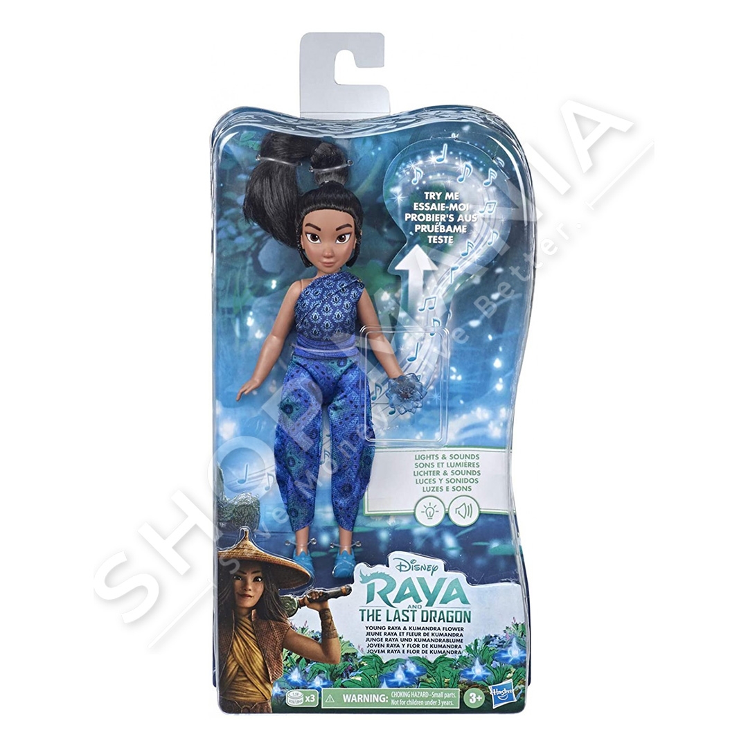 Disney Princess Raya & The Last Dragon Young Raya eshte kukulla Raya e re bashke me lulen Kumandra. Kur femijet i heqin krahun, Raya do te luaje muzike qetesuese dhe lulja Kumandra qe ka ne dore, e cila perfaqeson shpresen ne film, do te ndizet. Ajo ka veshur nje jumpsuit ngjyre blu dhe nje pale sandale bojeqielli dhe floket i ka te kapur lart. Mosha: +3 vjec