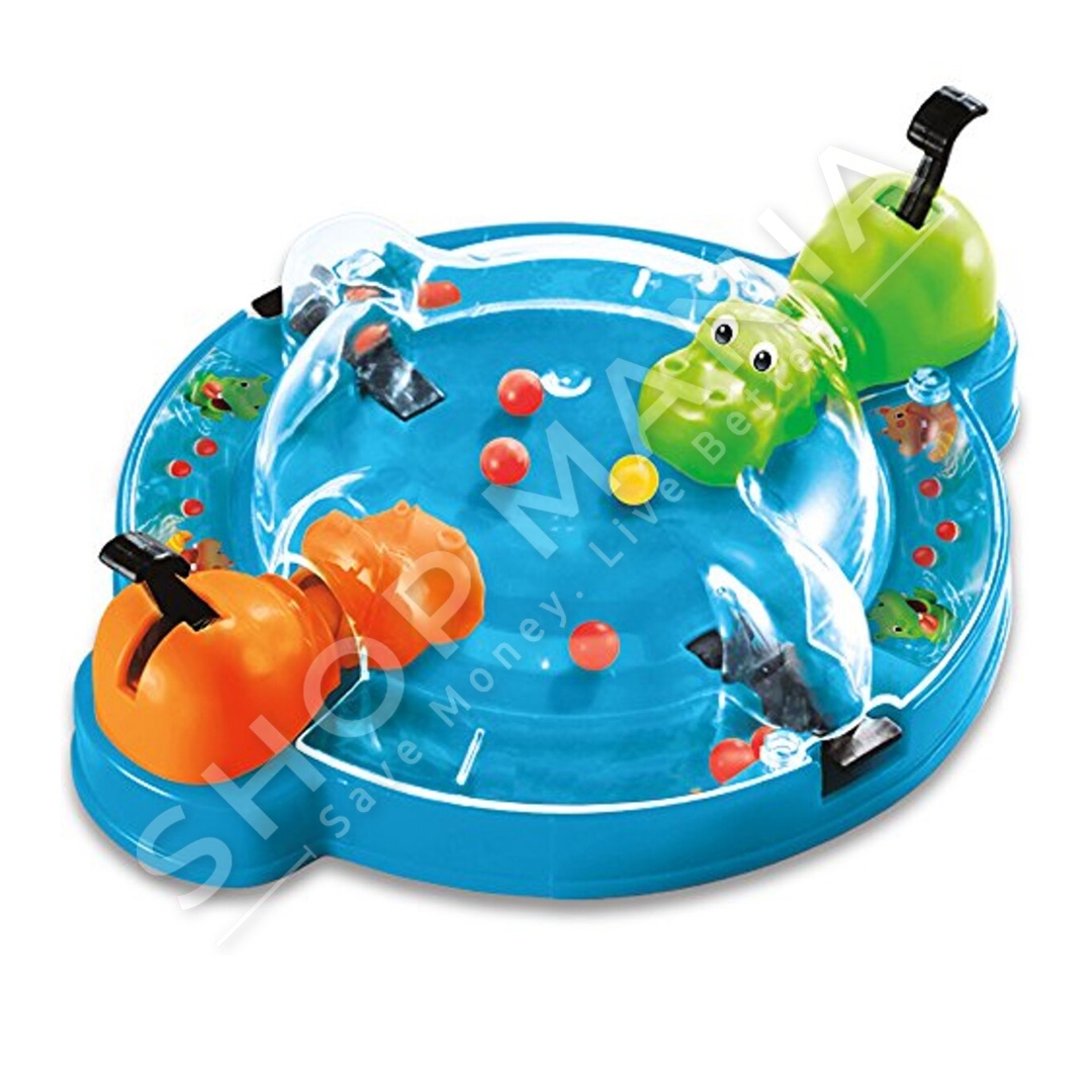 Hungry Hippo Grab and Go eshte loje ideale per femije mbi 4 vjec. Lojtari qe fiton ne fund te lojes numrin me te larte te topave nepermjet hipopotameve fiton lojen. Hipopotamet sa me shume topa te hane, aq me shume qafa e tyre do te rritet. Mosha: +4 vjec