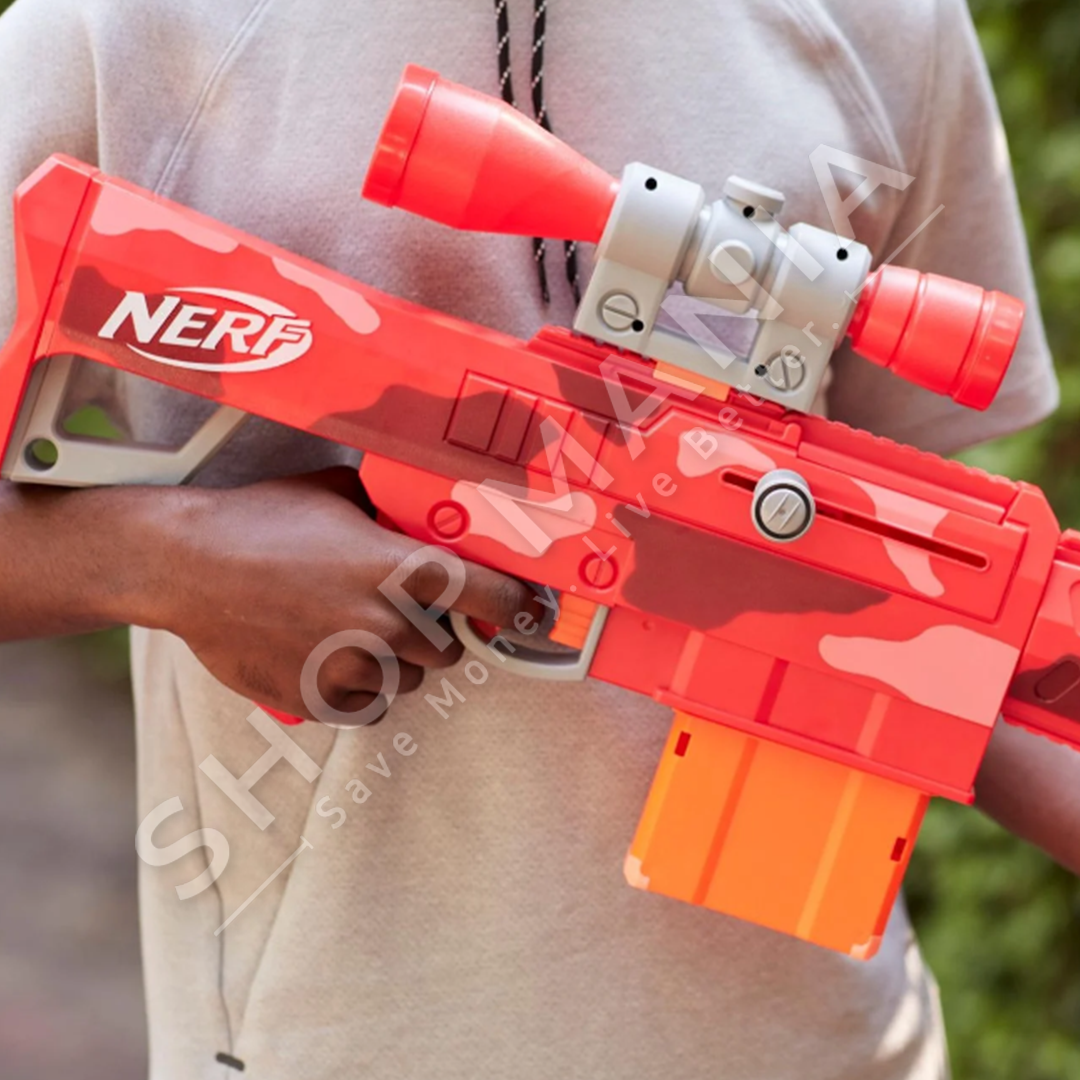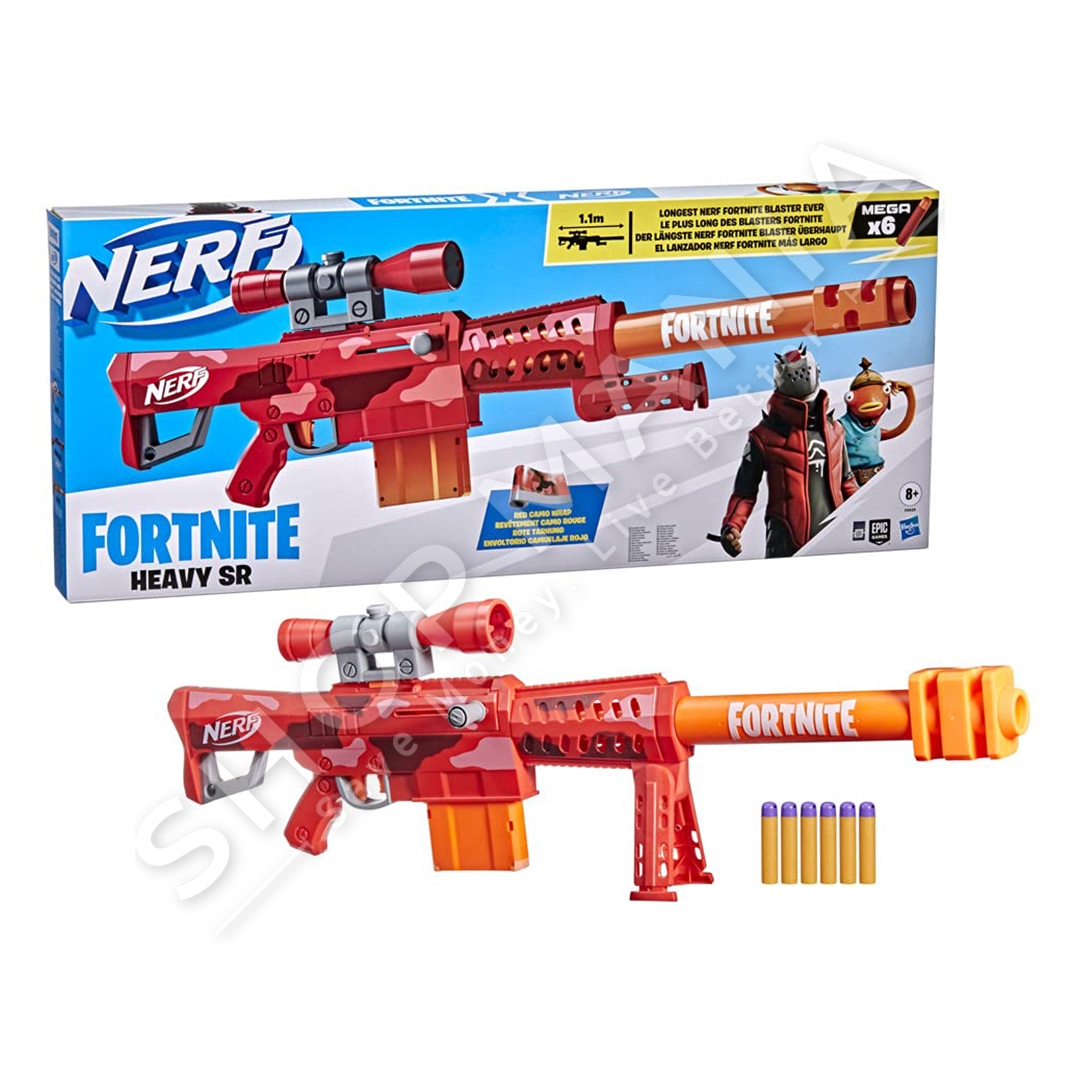 Pistoleta Nerf Fortnite Heavy SR eshte frymezuar nga pajisjet e perdorura ne Fortnite dhe vjen ne Converge Wrap nga videoloja popullore.