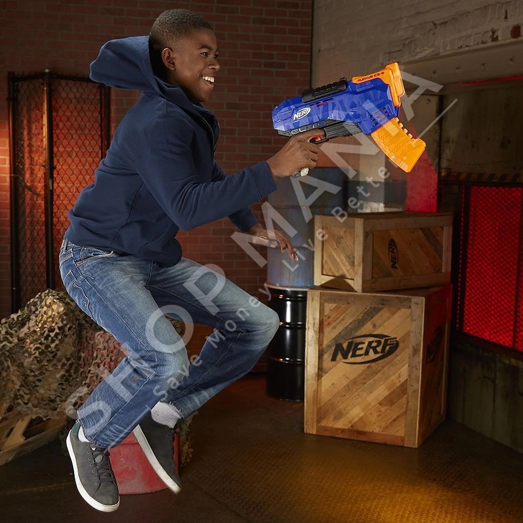 Pistolete loder perfshin 8 shigjeta Nerf Elite te dizenjuara per distance.