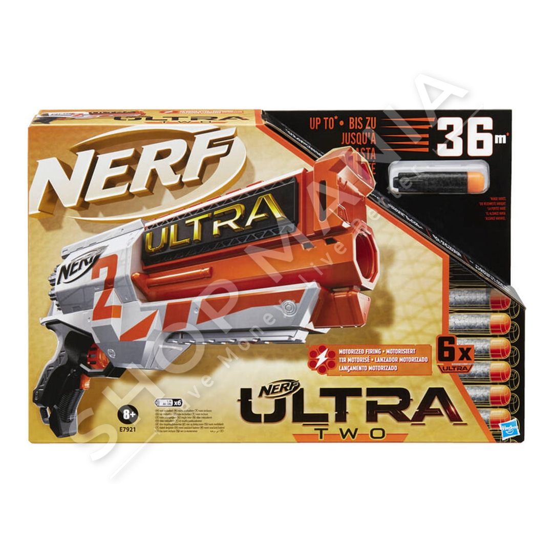 Përshkrimi:Pistolete loder Nerf Ultra Two me dizajn dhe performance te avancuar per te ofruar distance, saktesi dhe shpejtesi ekstreme.Ajo perfshin shigjetat Nerf Ultra, teknologjine Aerofin dhe shkumen Nerf Ultra.Specifikat:Ngjyra: Bojeqielli me portokalliShigjetat shkojne deri ne 25 metra largMosha: +8 vjec