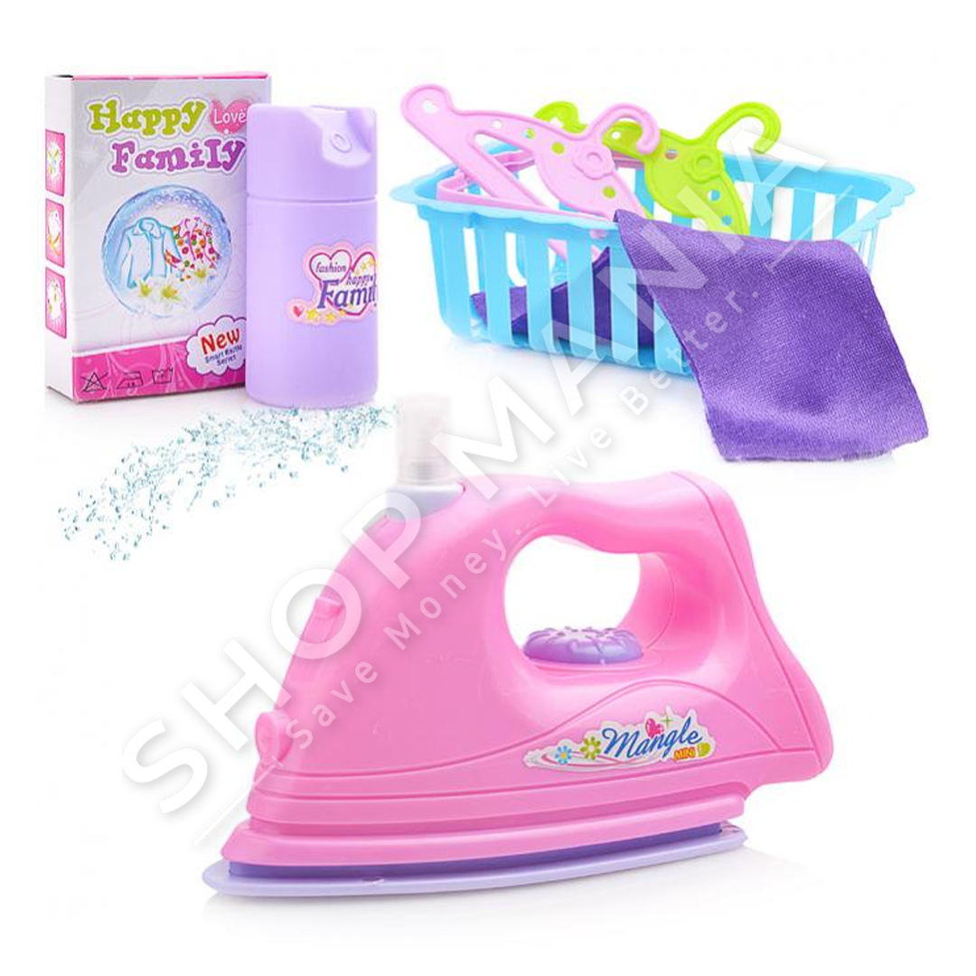 Femijet mund te luajne lojera duke hekurosur rrobat, duke derdhur uje ne hekur dhe duke shtypur butonin e sperkatjes.