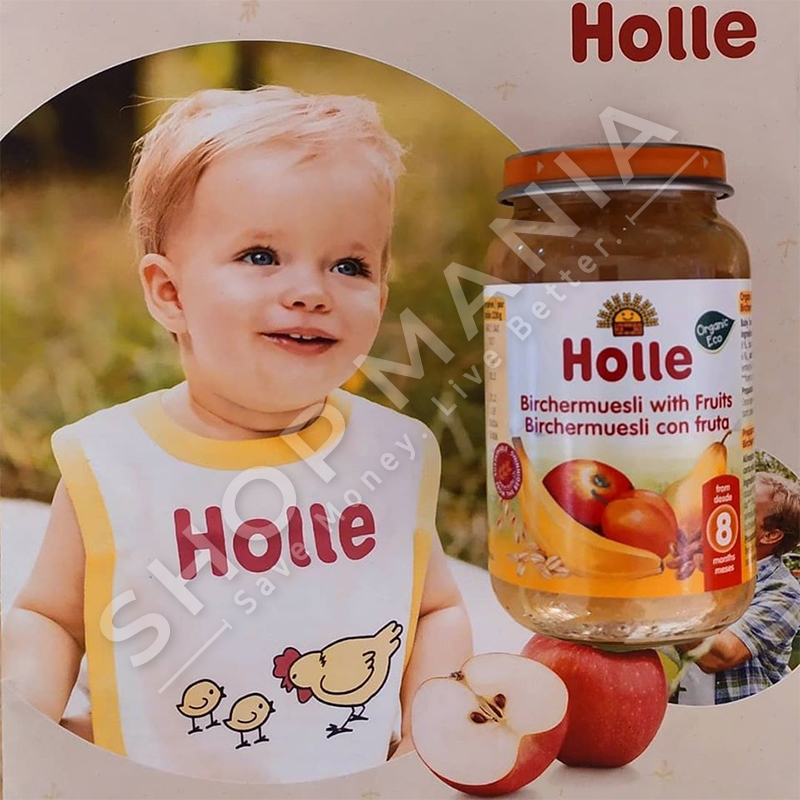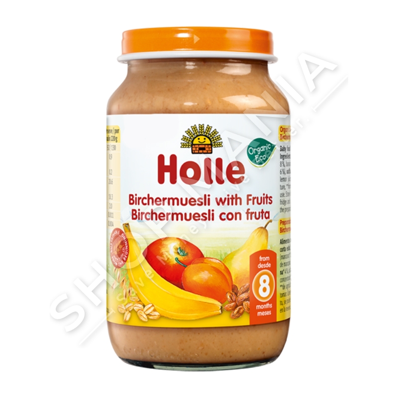 Birchermuesli me fruta eshte produkt bio, i krijuar me kujdes nga Holle per te qene delikat me femijen.