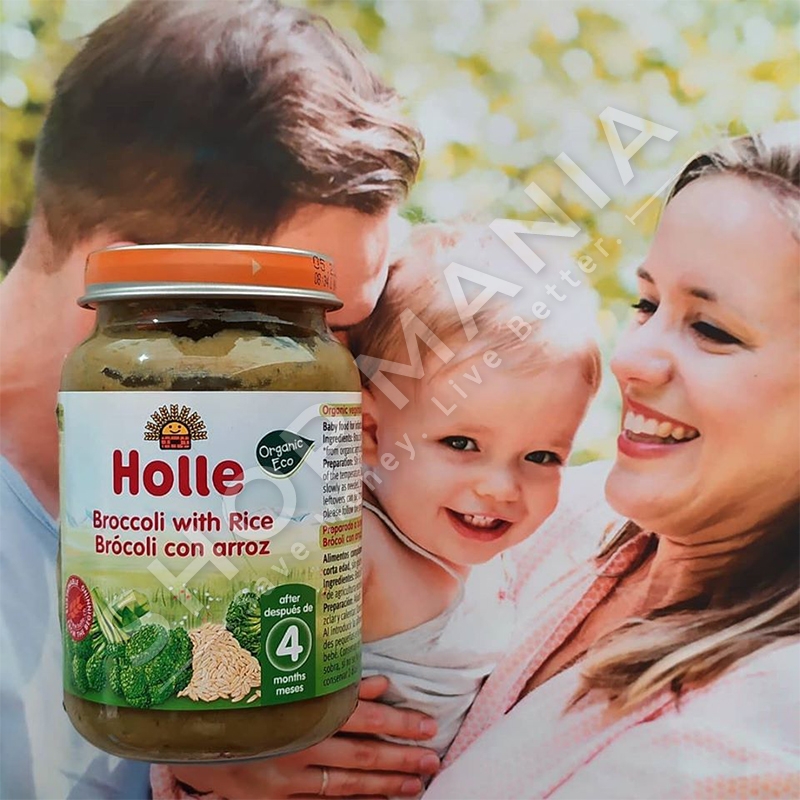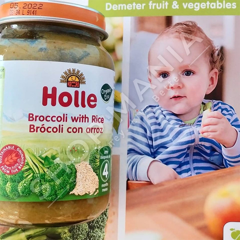 Pureja me oriz dhe brokoli, permban te gjitha vlerat ushqyese qe i nevojiten femijes pas muajit te 4 jetes.