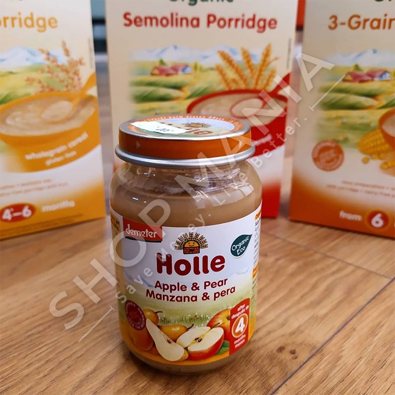 Pureja me molle dhe dardhe nga Holle, eshte e perdorshme pas muajit te 4 te jetes kur fillohet shtesa ushqimore krahas qumeshtit te gjirit apo atij formule.
