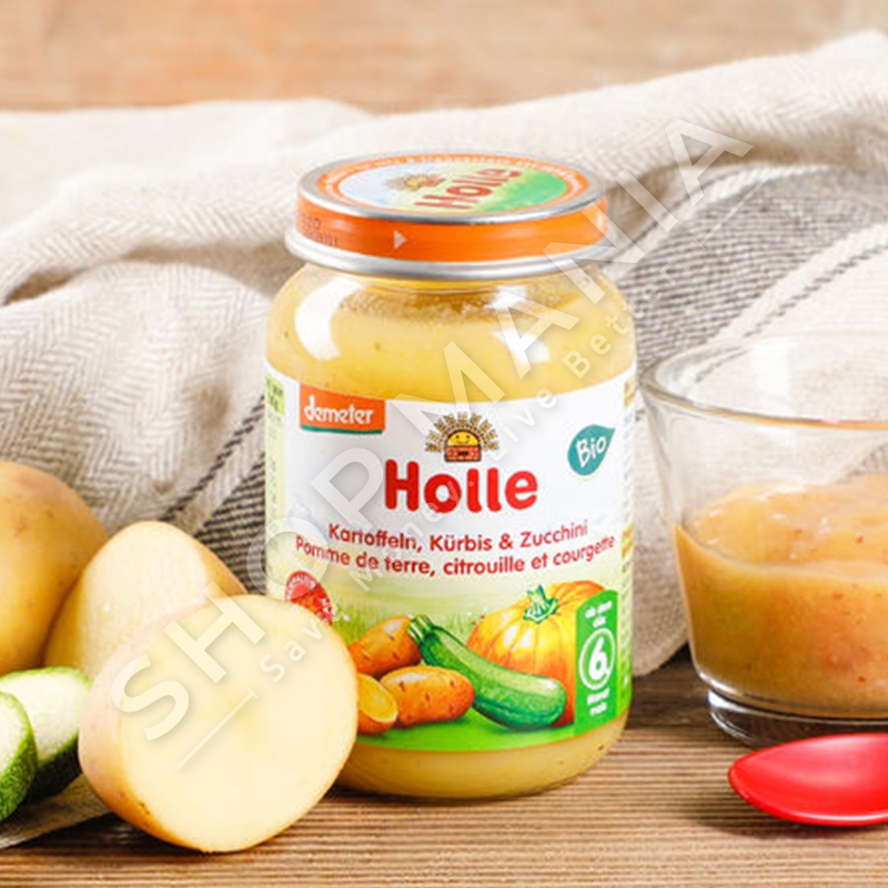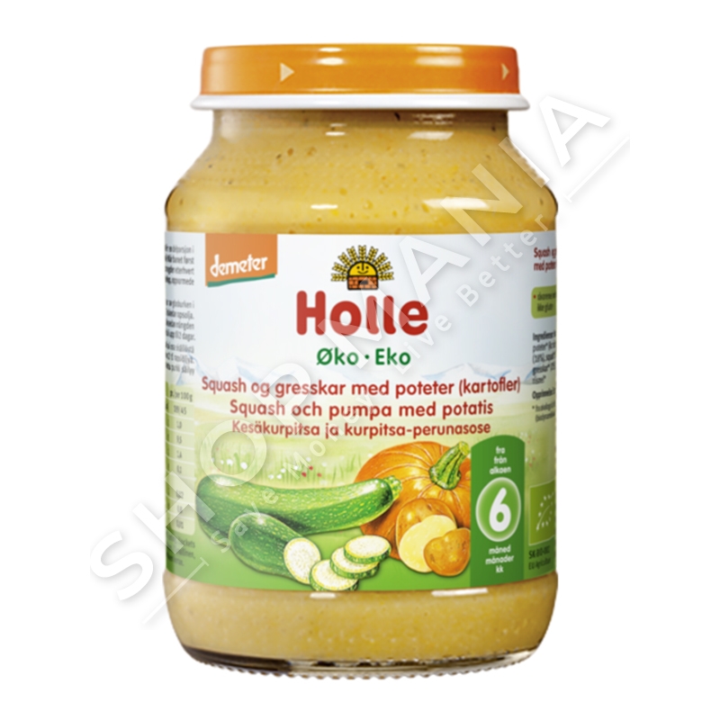Pureja nga Holle, me patate, kungull dhe kungull te njome perben ate qe i nevojitet femijes tuaj per nje vakt te plote me vlera ushqyese per femije mbi 6 muajsh.