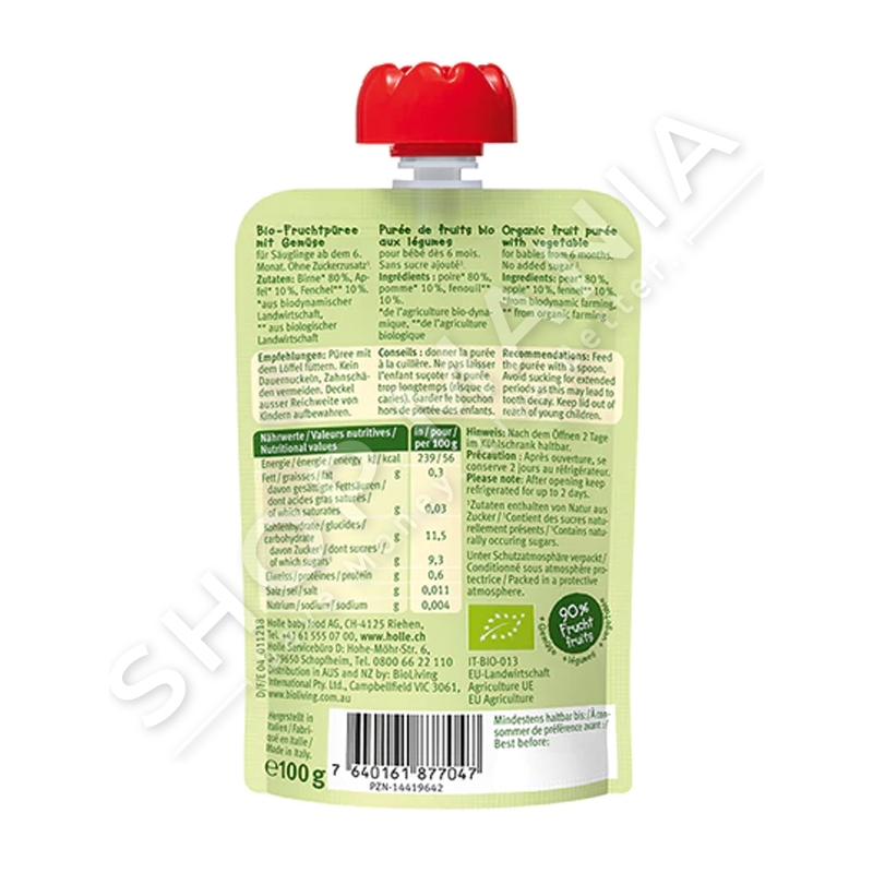 Purete Holle te certifikuara nga Demeter jane te pergatitura nga 100% fruta dhe perime organike.