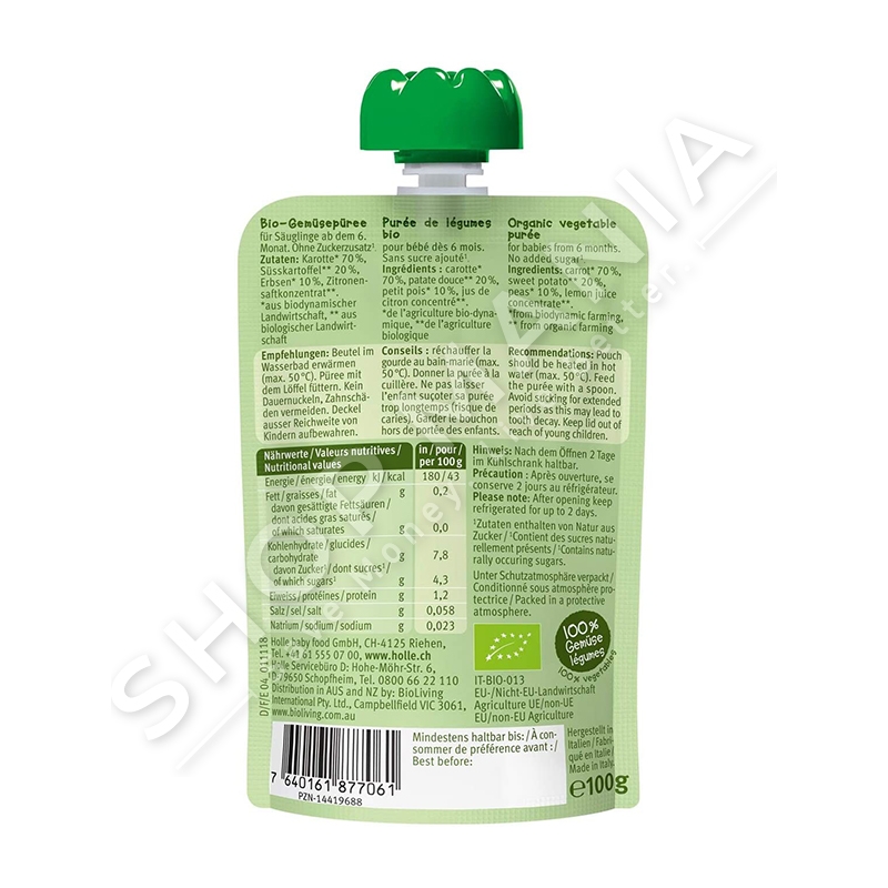 Holle, sjell per ju purene me karote, patate te embel dhe bizele ne nje paketim praktik dhe argetues per femijet, qe te marrin te gjithe nutrientet, pa ju munduar fare juve.