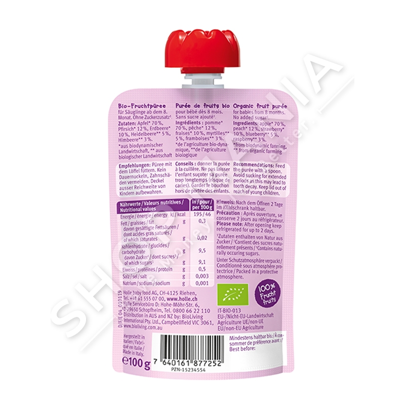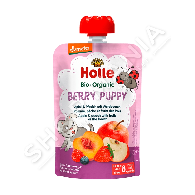 Pureja Holle, me molle, pjeshke dhe fruta pylli eshte e perftuar nga 100% fruta.
