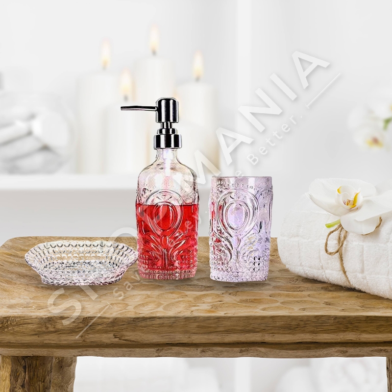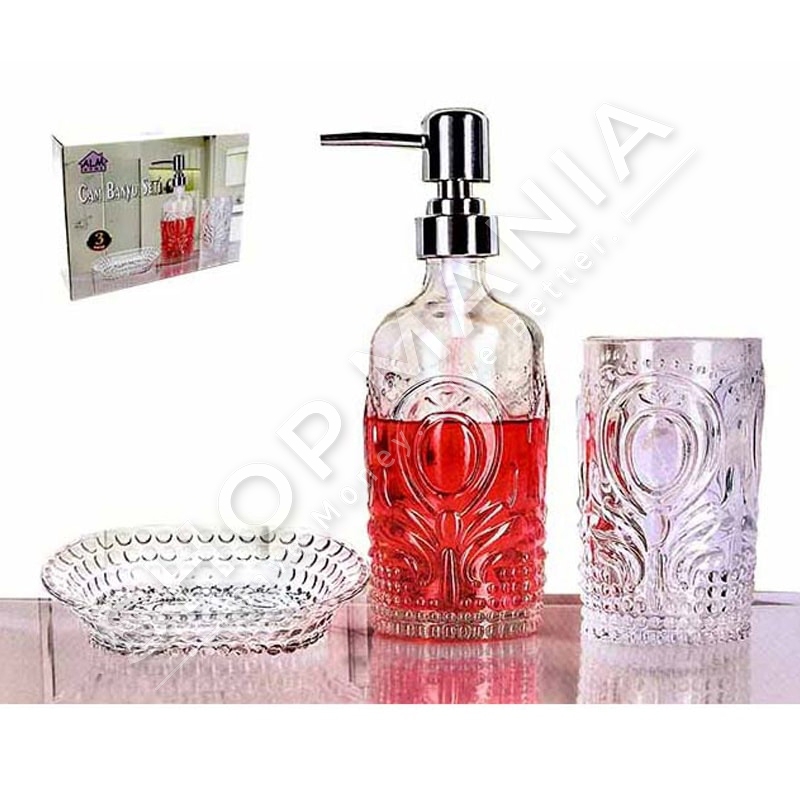 Seti prej qelqi per banjo (3 cope) ploteson cdo nevoje per lavamanin tuaj te banjos, duke ju lehtesuar pune por edhe duke i shtuar estetiken ambientit.