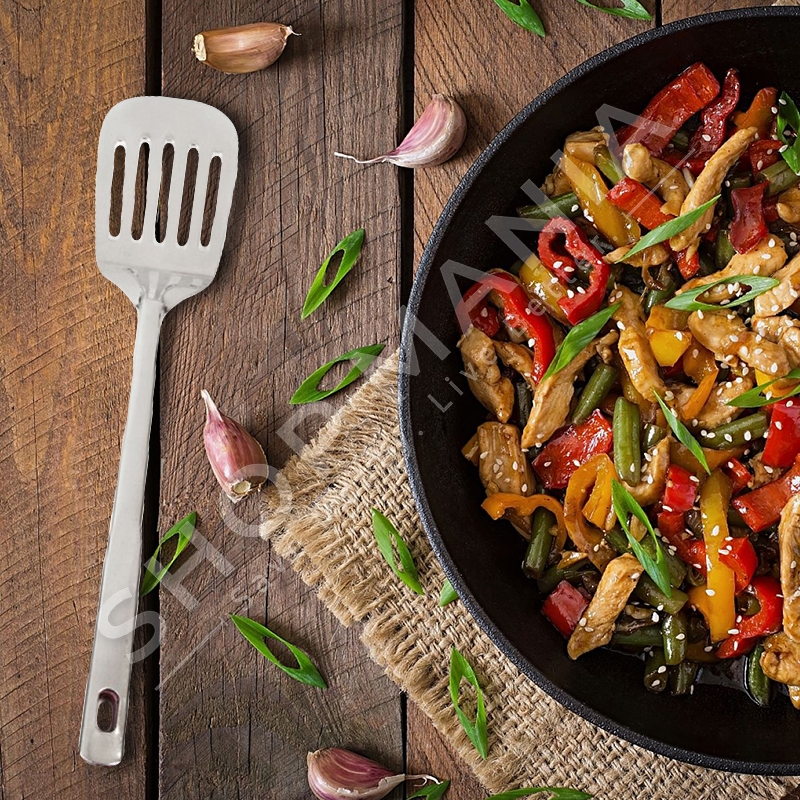 Spatul inoksi me vrima per te sherbyer ushqimin nga “Homestyle”.