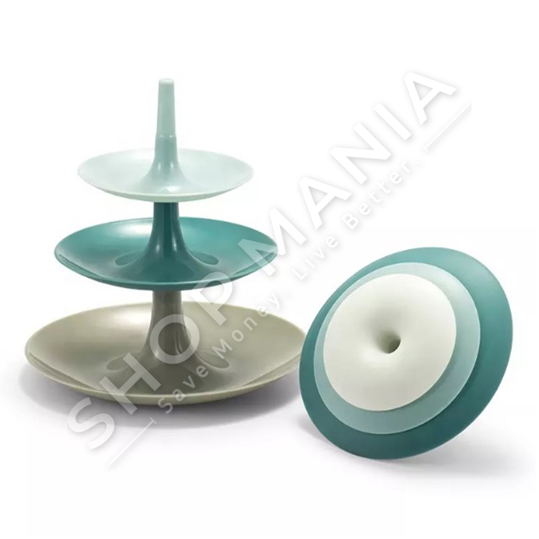 Specifikat:Materiali: PlastikeDiametri 1: 15 cmDiametri 2: 20 cmDiametri 3: 25 cmNgjyra: E bardhe me bezhe dhe bojeqielli