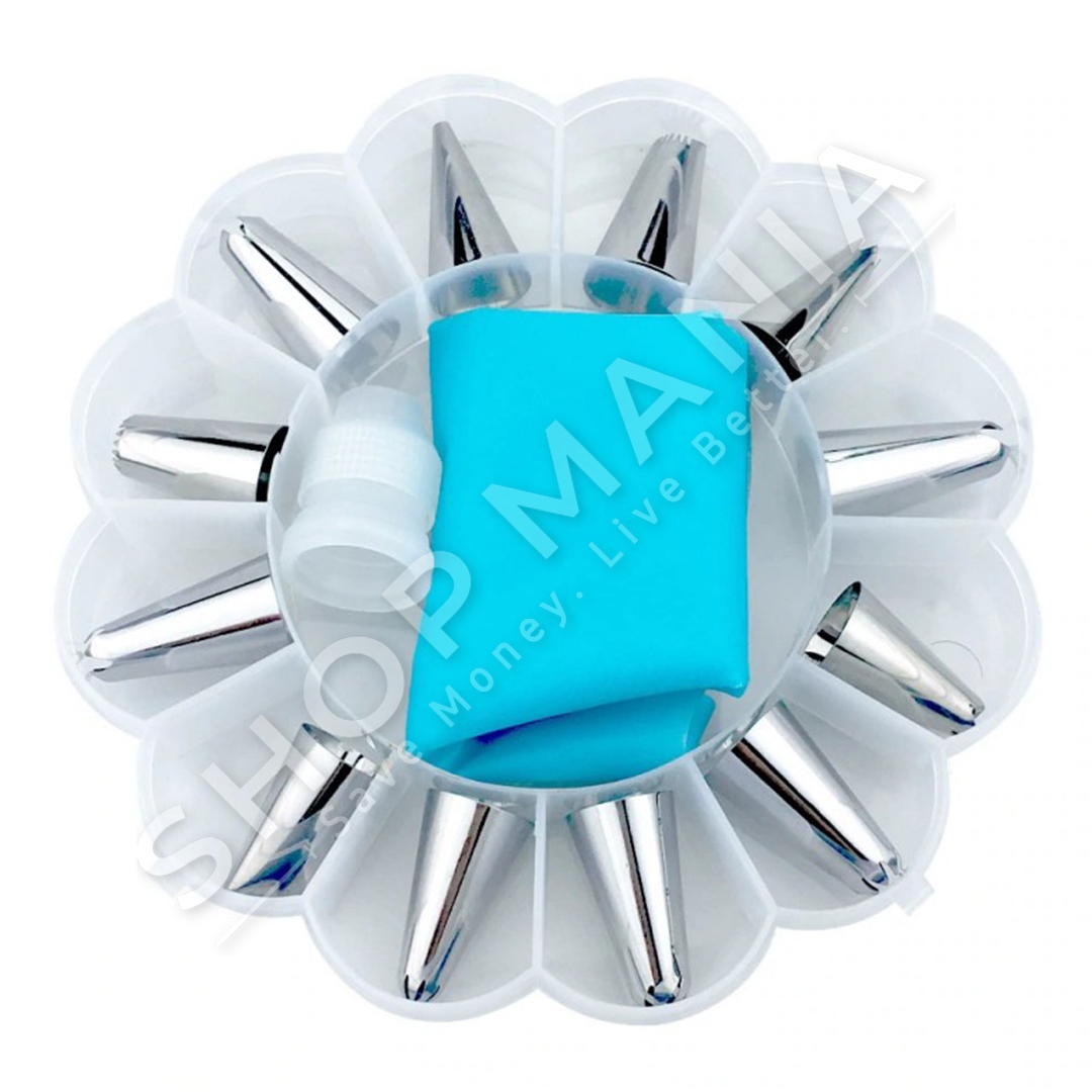 Përshkrimi:Shtrydhese krem pasticerie "Homezaza" me 12 forma te ndryshme per nxjerrjen e kremit.Ideale per te bere embelsira, forma keku etj.Specifikat:Materiali: Metal dhe silikonSeti perfshin: 12 format e ndryshme per nxjerrjen e kremitQesen e kremitKutine ne forme luleNgjyra: Gri me blu