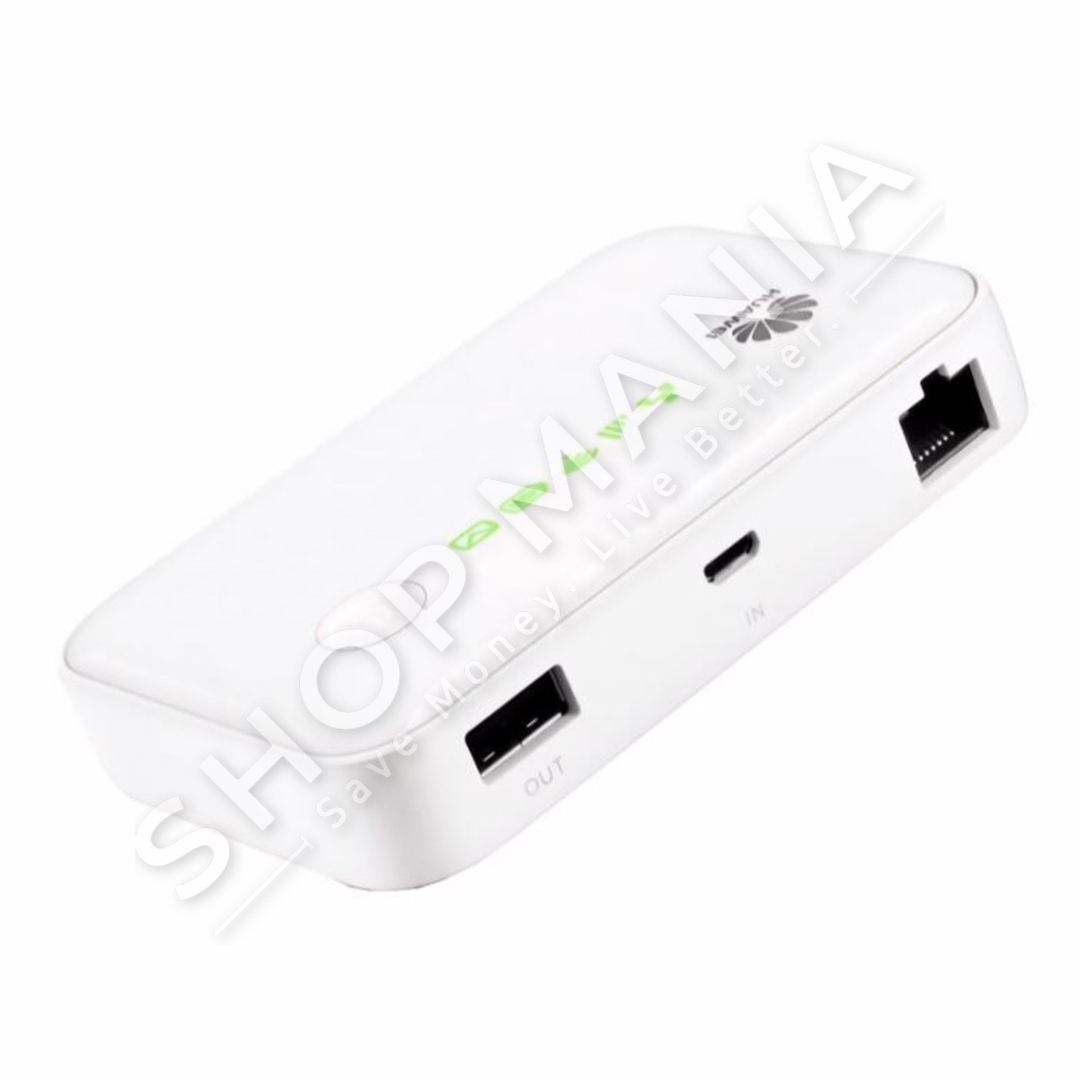 Router Huawei me nje porte Ethernet, e cila mund te lidhe kabllon Ethernet per te mbeshtetur terminale te shumta te aktivizuara me Wifi per te hyre ne internet. Ka gjithashtu nje fole per karten SIM dhe sherben gjithashtu dhe si PowerBank me kapacitet 5200 MAH.