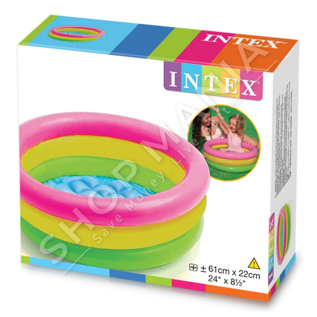 Nje pishine qe fryhet lehtesisht me ngjyra ylberi "Intex Sunset Glow Baby Pool" ofron argetim maksimal per femijen te levize dhe te luaje ne uje.