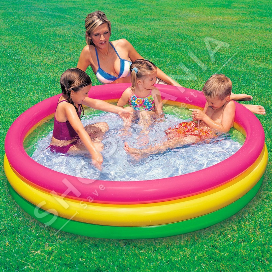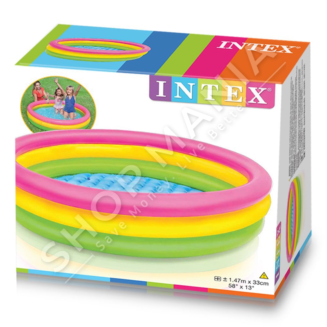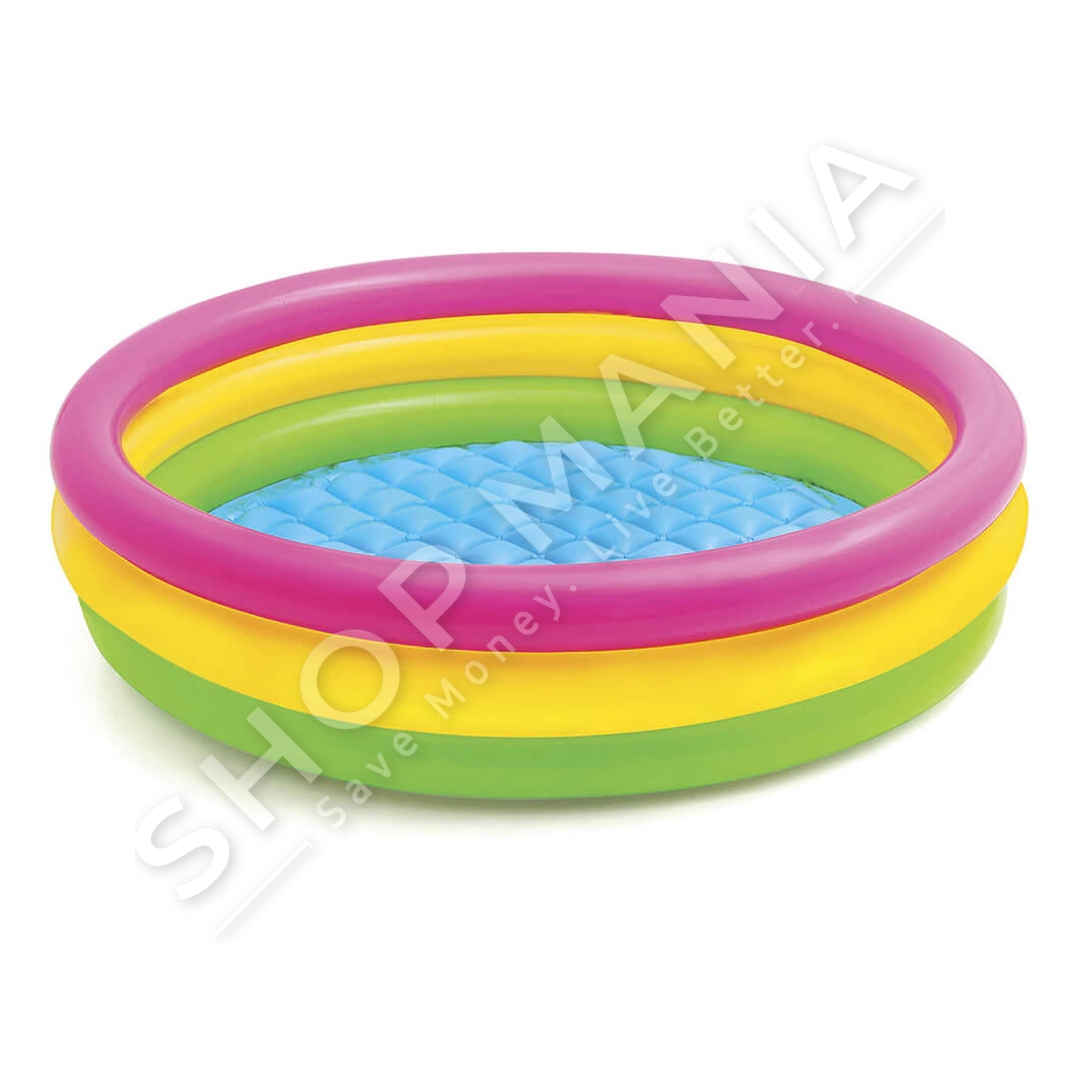 Nje pishine qe fryhet lehtesisht me ngjyra ylberi "Intex Sunset Glow Pool" ofron argetim maksimal per femijen te levize dhe te luaje ne uje.