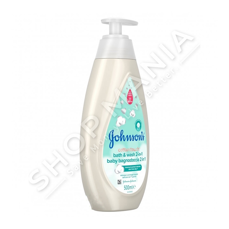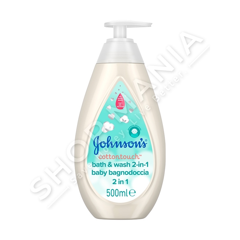 Shampo dhe xheli i dushit Johnson's baby 2 ne 1, me permbajtje pambuku, pastron butesisht floket dhe mbron lekuren sensitive te bebeve te porsalindura.