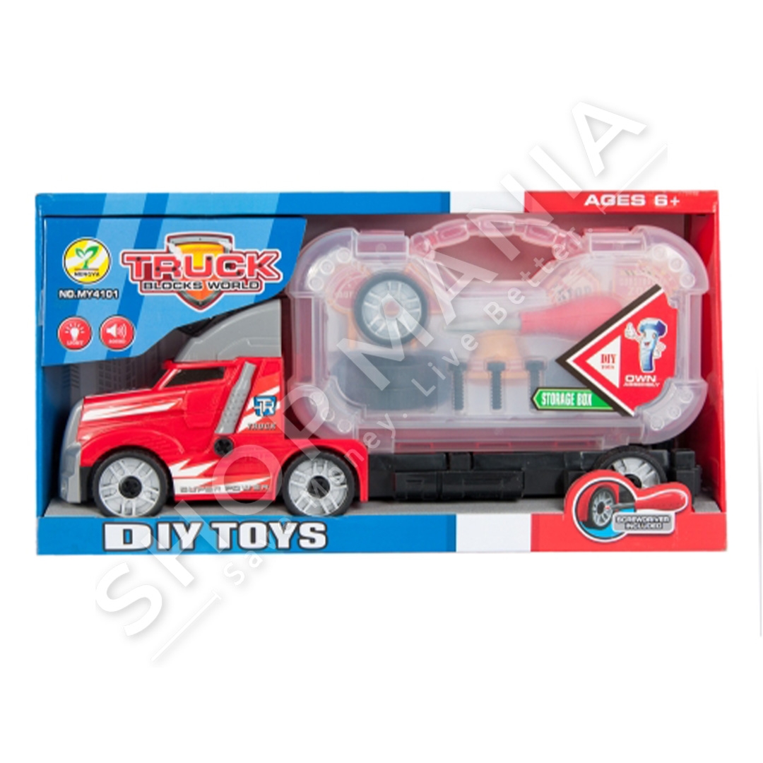 Paketimi perfshin nje kamion me nje valixhe me aksesore si: rrote shtese, bulona etj.