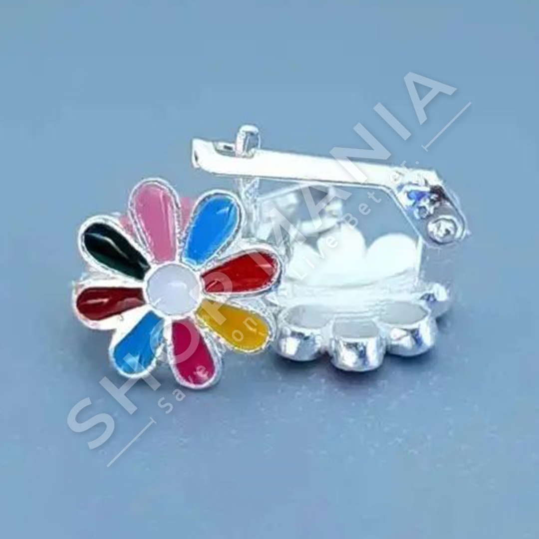 Karfice argjendi per veshje me gur zirkon dhe dizajn luleje me petale ne ngjyra te ndryshme.