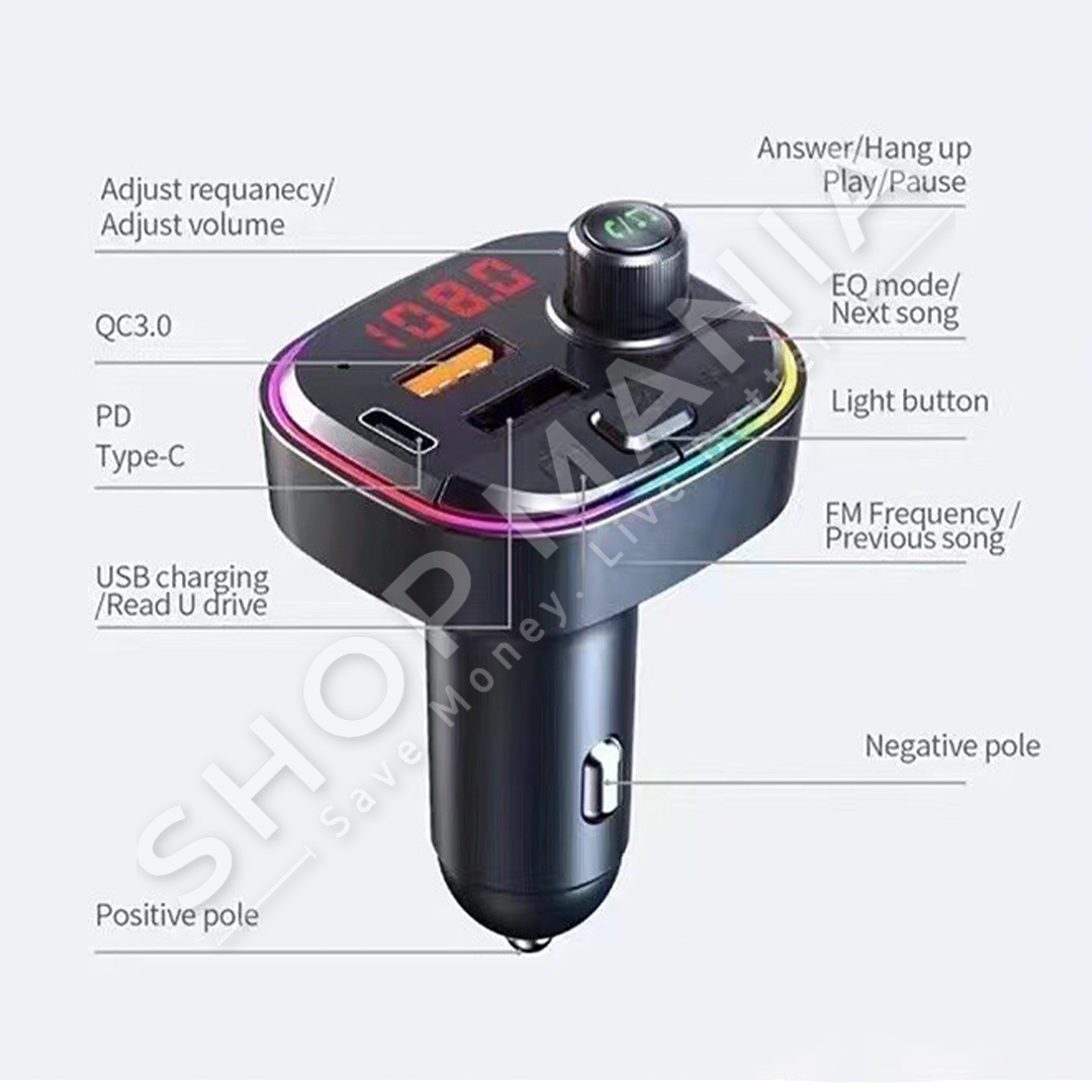 Karikues makine & MP3 player, i pajisur me 3 porta USB me 2 karikim te shpejte, dhe porta USB-C PD. Mbeshtet karikimin e shpejte te dy pajisjeve njekohesisht. Lidhet automatikisht me telefonin tuaj sa here qe ndizni makinen.