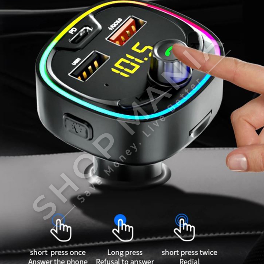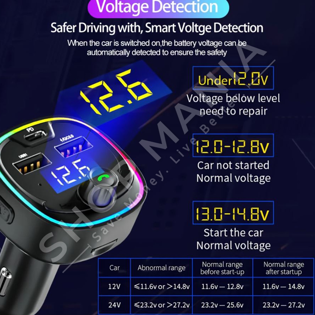 Karikues makine & MP3 player, i pajisur me 2 porta output, 1 prej te cilave eshte USB dhe tjetra eshte Type-C duke mundesuar karikimin e dy celulareve ne te njejten kohe. Ne momentin qe ndizet makina, karikuesi tregon dhe nivelin e voltazhit te baterise. Me funksionin e MP3 ku ju mund te degjoni muzike nga Flash Drive, TF Card etj.