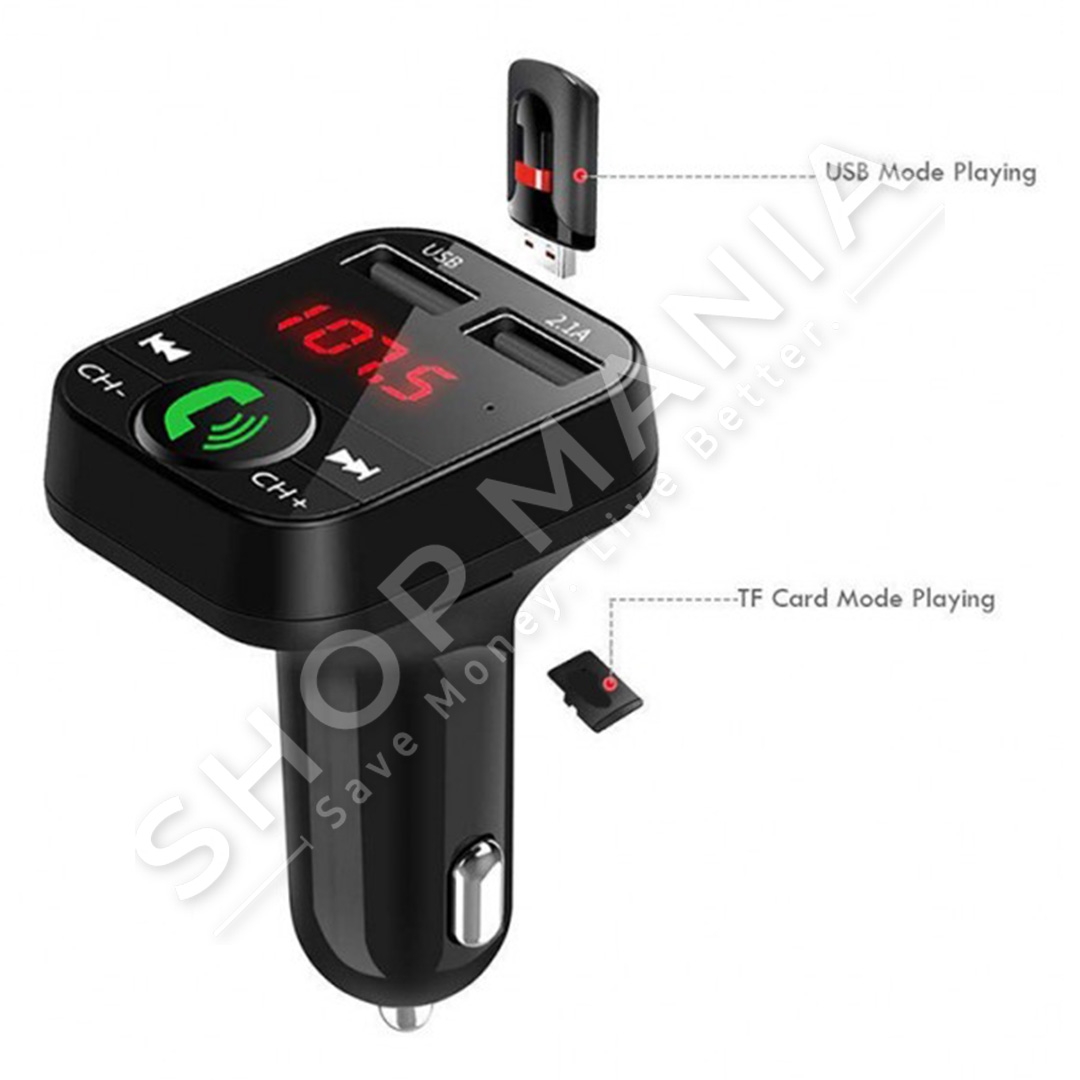 Karikues makine & MP3 player, i pajisur me 2 porta output, 1 prej te cilave eshte USB dhe tjetra eshte USB 2.1 A duke mundesuar karikimin e dy celulareve ne te njejten kohe. Funksionon teknologjine e transmetimit wireless me frekuence te plote FM, e cila mund te lexoje drejtperdrejte skedaret audio ne Bluetooth/karten TF/diskun.