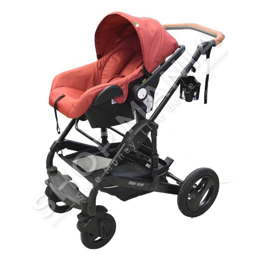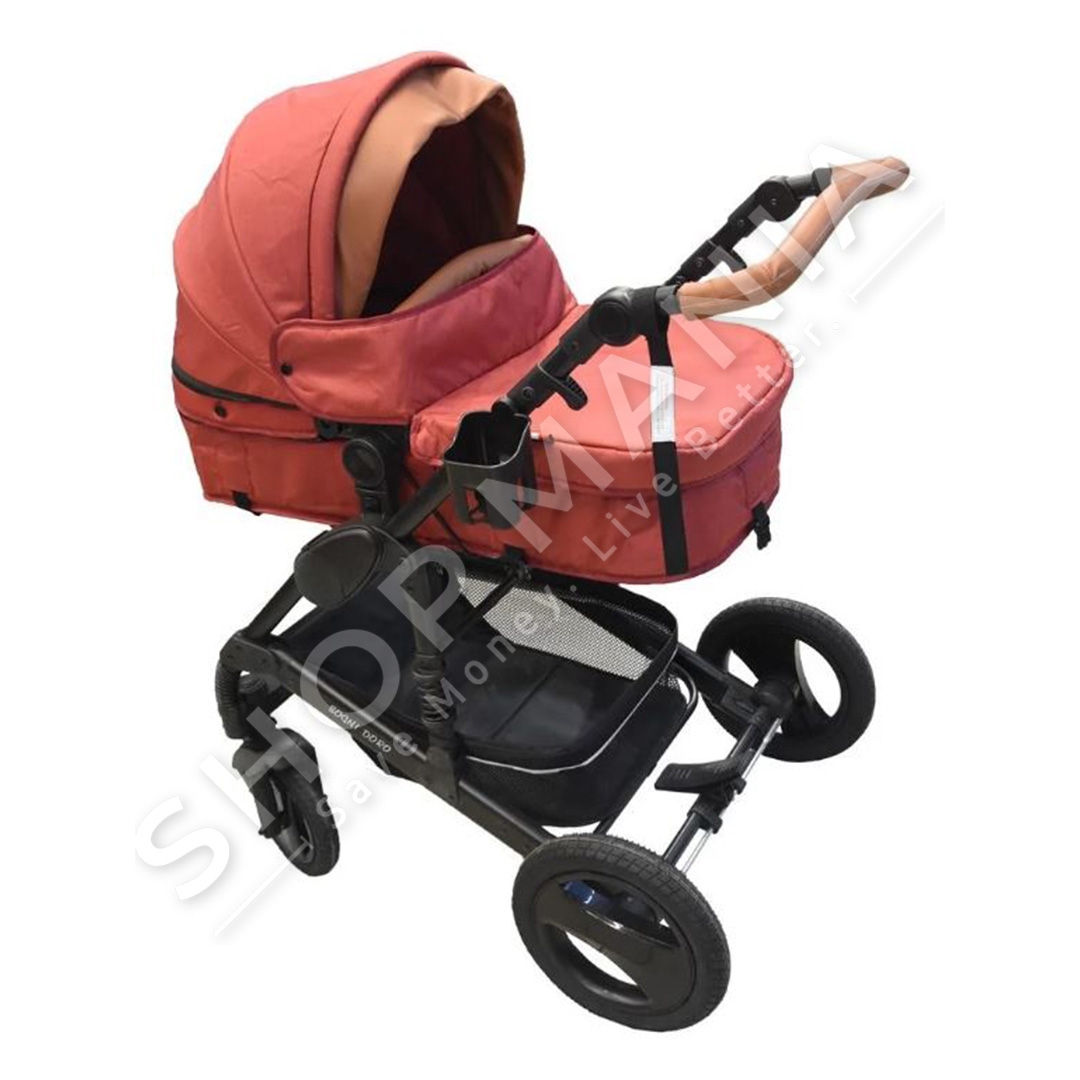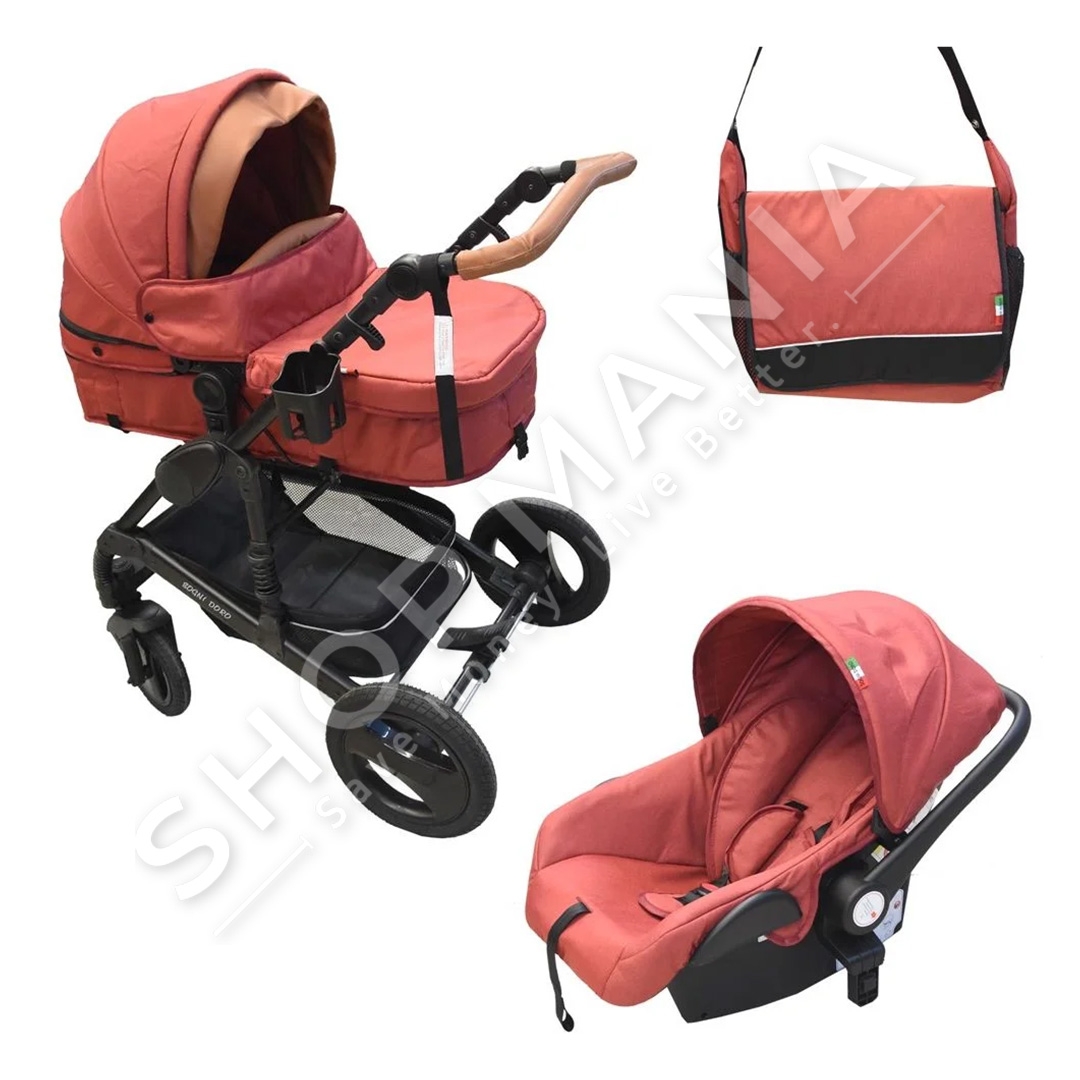 Set karroce 3 ne 1, i cili permban nje karroce bebesh, nje kosh per bebe, nje sexholino dhe nje cante per mbajtjen e sendeve te bebeve,