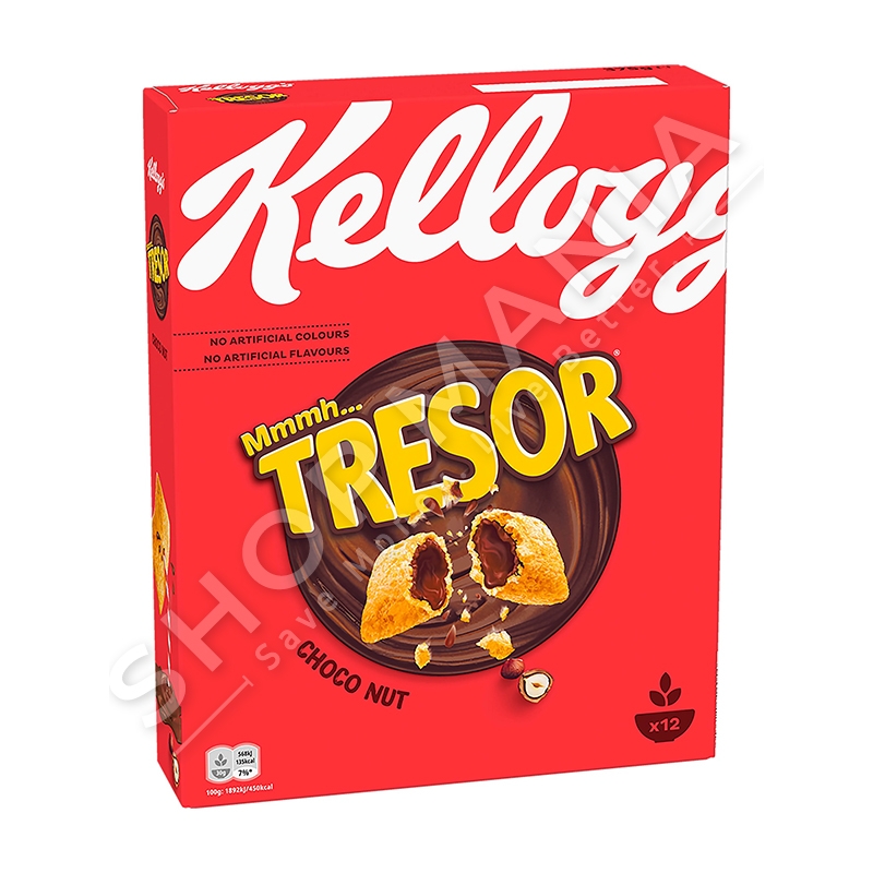 Corn Flakes te perbera nga grur, tershere dhe oriz me shije cokollate dhe te mbushura me krem lajthie.