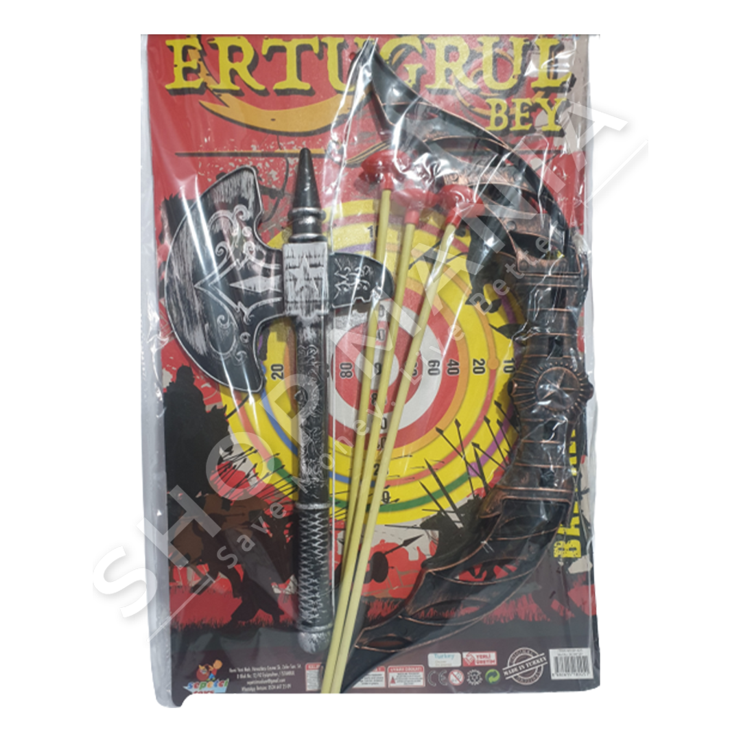 Seti permban nje hark shigjete, 3 shigjeta dhe sepate.