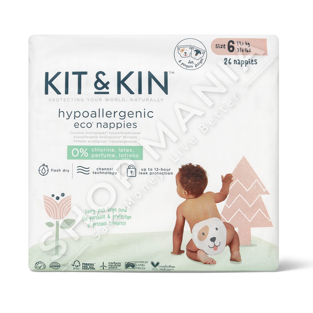 Përshkrimi: Keni perdorur shpesh per femijet tuaj pelena jo efektive qe shkaktojne alergji ne lekuren e ndjeshme te femijes? Tani me pelenat hipoalergjike "Kit & Kin Nappies Size 6" lekura e femijeve do te jete e bute dhe pa alergji.