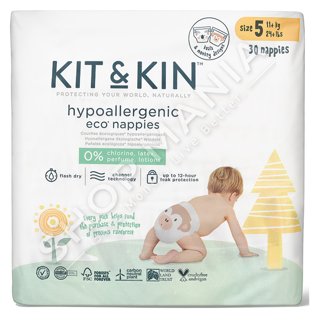 Përshkrimi: Keni perdorur shpesh per femijet tuaj pelena jo efektive qe shkaktojne alergji ne lekuren e ndjeshme te femijes? Tani me pelenat hipoalergjike "Kit & Kin Nappies Size 5" lekura e femijeve do te jete e bute dhe pa alergji.