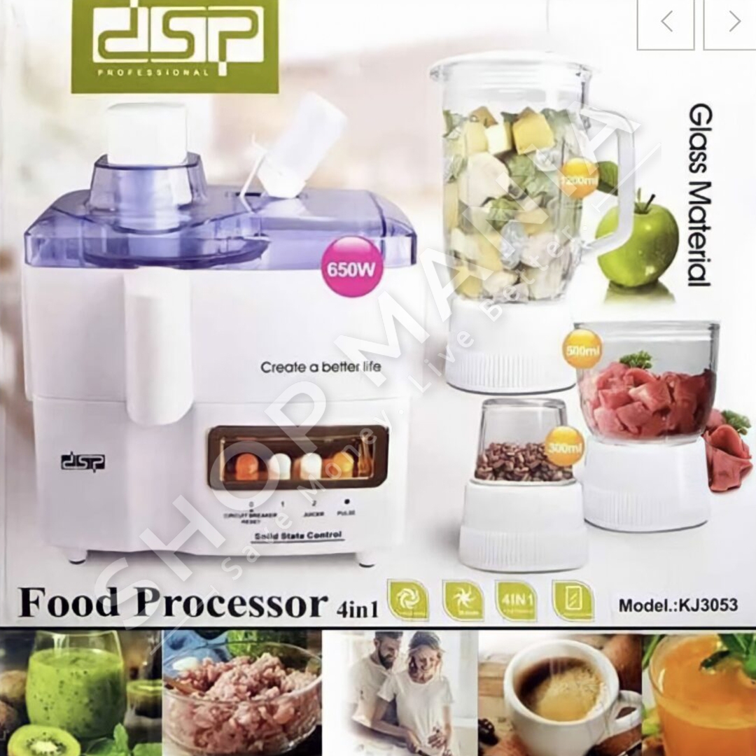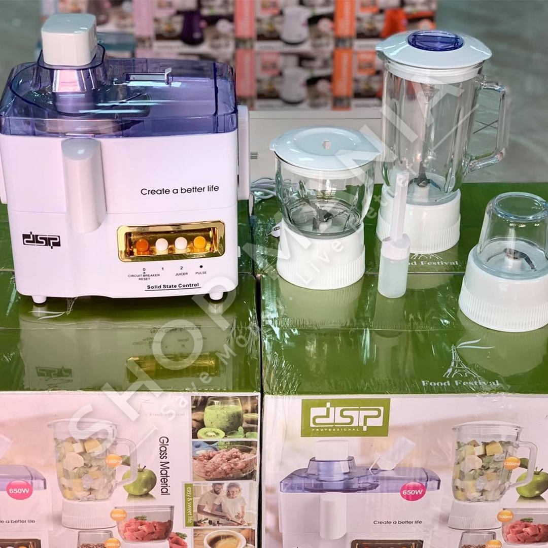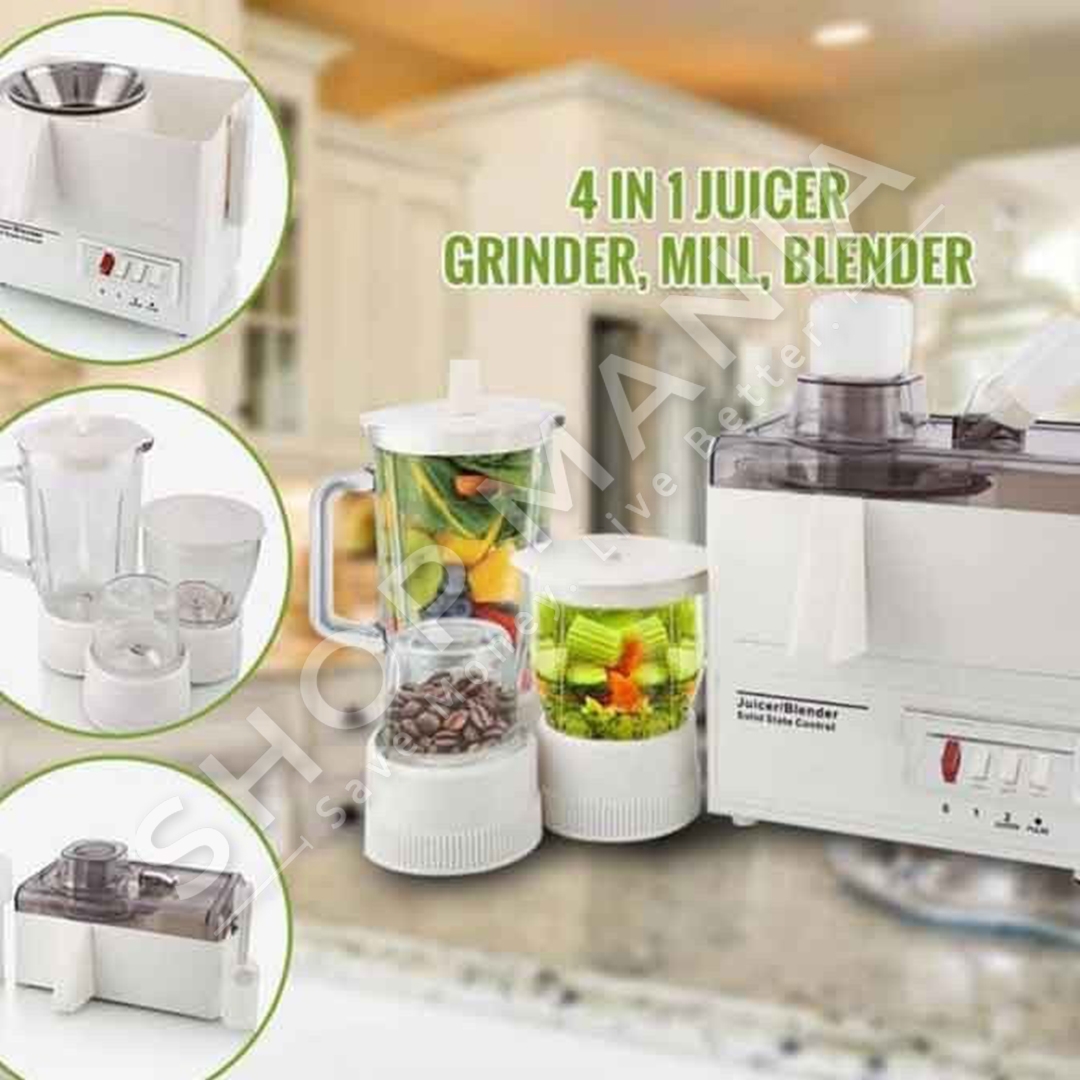 Kombinat 4 ne 1 me funksion te katerfishte: mikser per pergatitjen e lengjeve te ndryshme, blender per pergatitjen e smoothie, salcave etj, grirese per perime, fruta dhe mishin dhe bluarse per erezat apo frutat e thata. Me baze me kembe silikoni qe nuk rreshkasin (e bejne mikserin te qendrueshem ne cdo lloj siperfaqe).