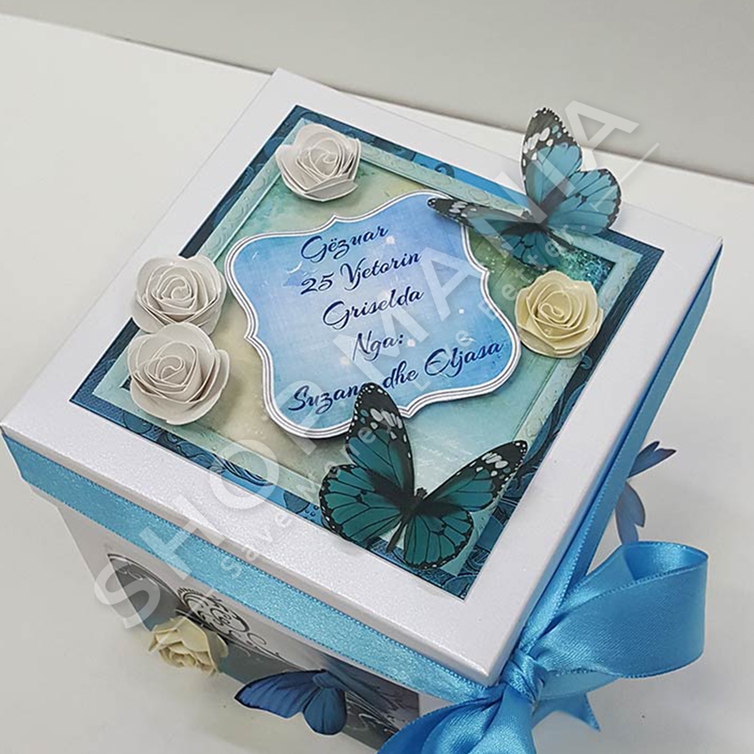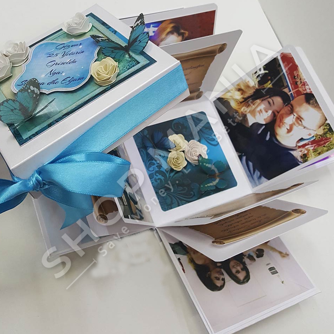 Kompozim - Kuti dhurate "Exploding Box" eshte nje album krijues, i mbushur me kujtime, foto dhe mesazhe.