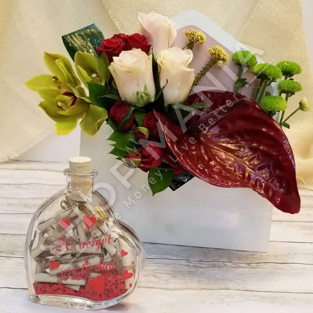 Kompozim lulesh ne zarf, nje ide unike per dike qe pelqen shume lulet. Permban lule te ndryshme teper te vecanta dhe plot ngjyra, te futura ne nje zarf te bardhe. Eshte e shoqeruar me mesazhet "20 Arsyet pse te dua" te vendosura ne nje ene te dekoruar (shishe ose kavanoz). Koha e realizimit te ketij kompozimi eshte 24 ore.
