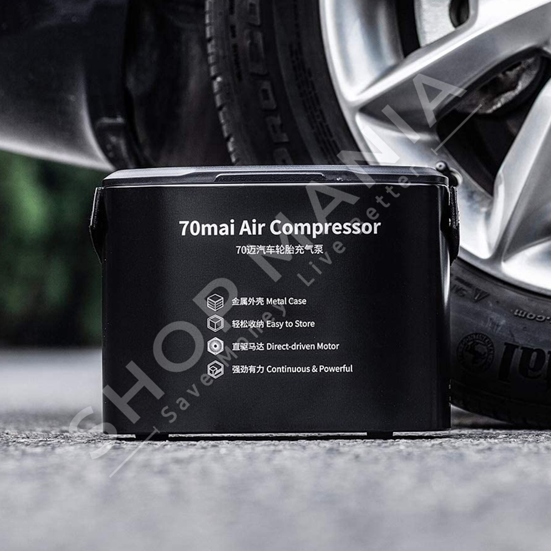 Kompresor ajri 70mai me dizajn dhe material me cilesi te larte. Mund te fryje me lehtesi dhe shpejtesi nje gome te mesme te madhesise 195/70R14 brenda 3 minutash me nje shpejtesi prej 39L/min nga 0 ne 30 PSI. Me cipin inteligjent pranon te dhena ne kohe reale nga sensori dhe rregullon ne menyre dinamike presionin. Ju lehtesisht mund te paracaktoni presionin e gomave qe deshironi dhe kompresori i ajrit do te nderpritet automatikisht kur te arrije presionin e paracaktuar. Mund te perdoret per fryrjen e gomave te bicikletave, motocikletave, makinave, kamionave.